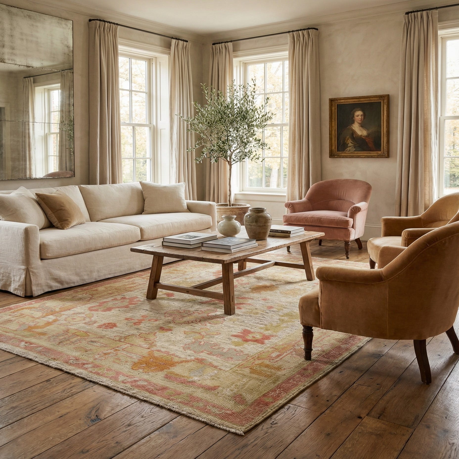 5' 1 x 6' 10 Hand Knotted Oushak Wool Rug