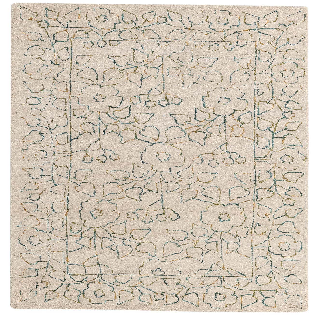 Primary color is Ivory. Colors in this rug include: Ivory, Blue, Green.