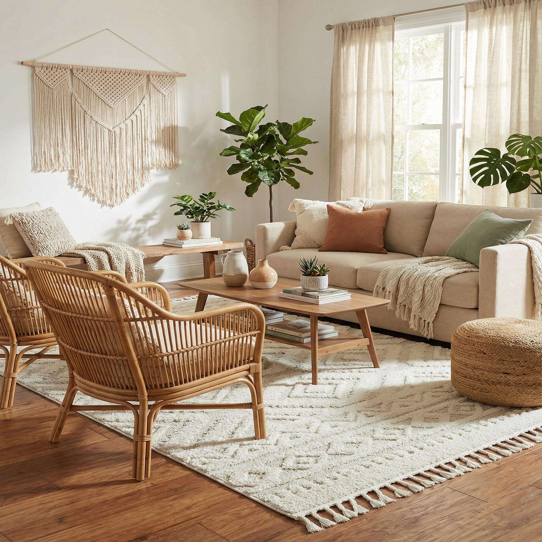 This rug's shed-free nature guarantees a consistent appearance over time. The design and color make it a flexible addition to a range of interior styles, from contemporary settings that favor clean lines and minimalistic approaches, to bohemian spaces that embrace layers and eclectic assortments. It can also complement more traditional decor by adding a touch of modernity without overpowering the room's classic elements.