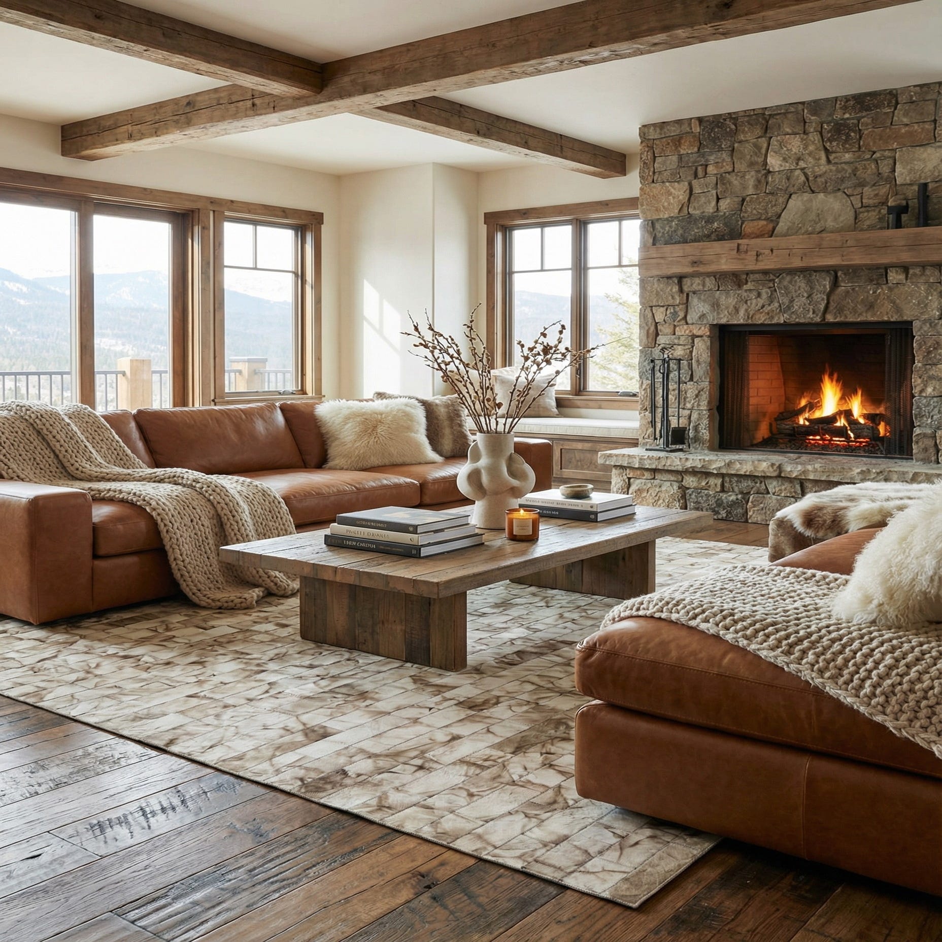 The neutral ivory background brightens a room while the brown accents add warm depth, making the rug versatile across styles. Pair it with linen upholstery and reclaimed wood for a relaxed farmhouse or rustic look, layer it under a simple coffee table to warm hardwood floors in a contemporary living room, or set it near a bed to bring organic texture to a serene bedroom. It also works with matte black metal and concrete finishes for a modern-industrial balance.