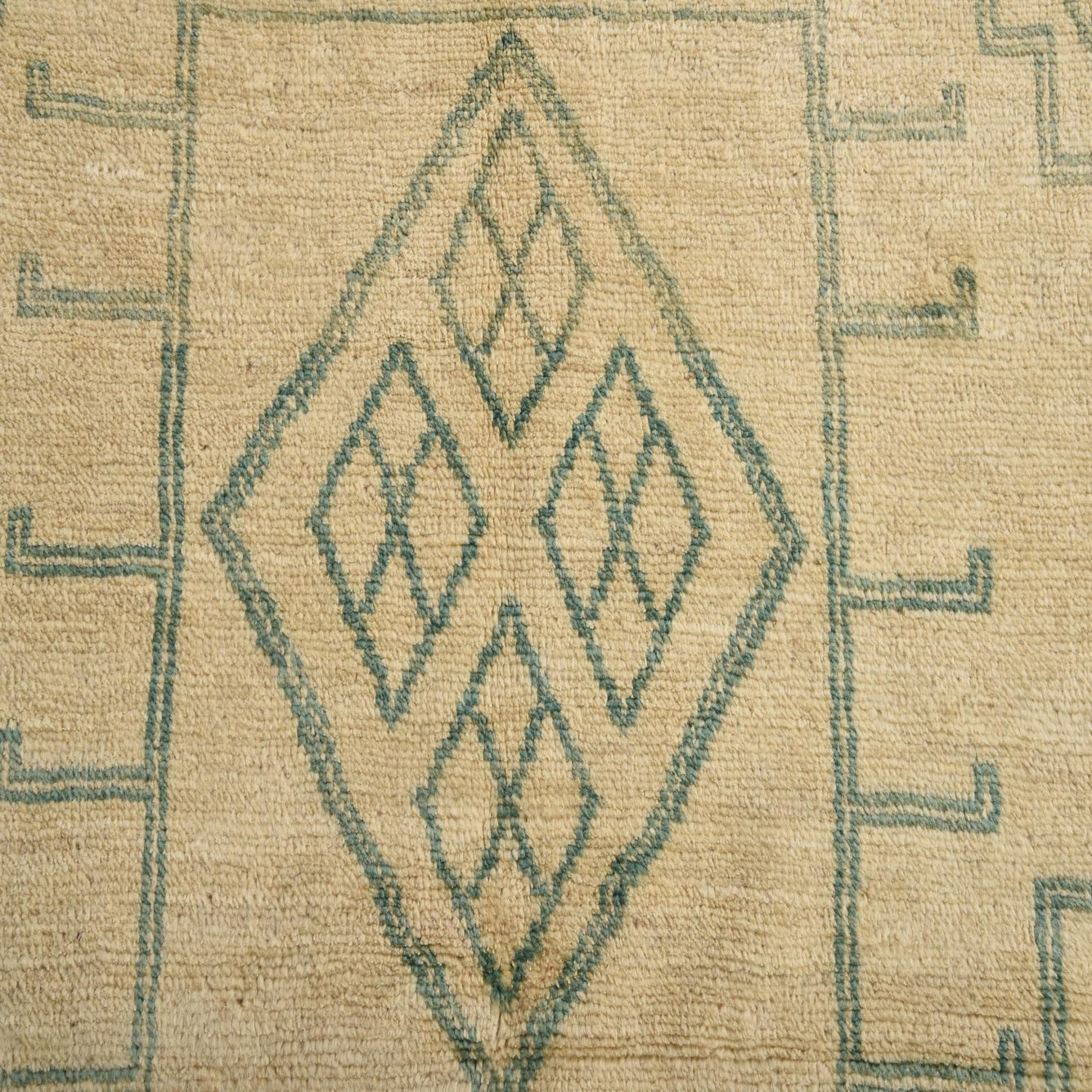 The texture is consistent with the high-quality construction typically associated with hand-knotted wool rugs. The Darya's design employs clear, defined lines and shapes that draw inspiration from traditional patterns, making it a versatile addition to an array of interior spaces.