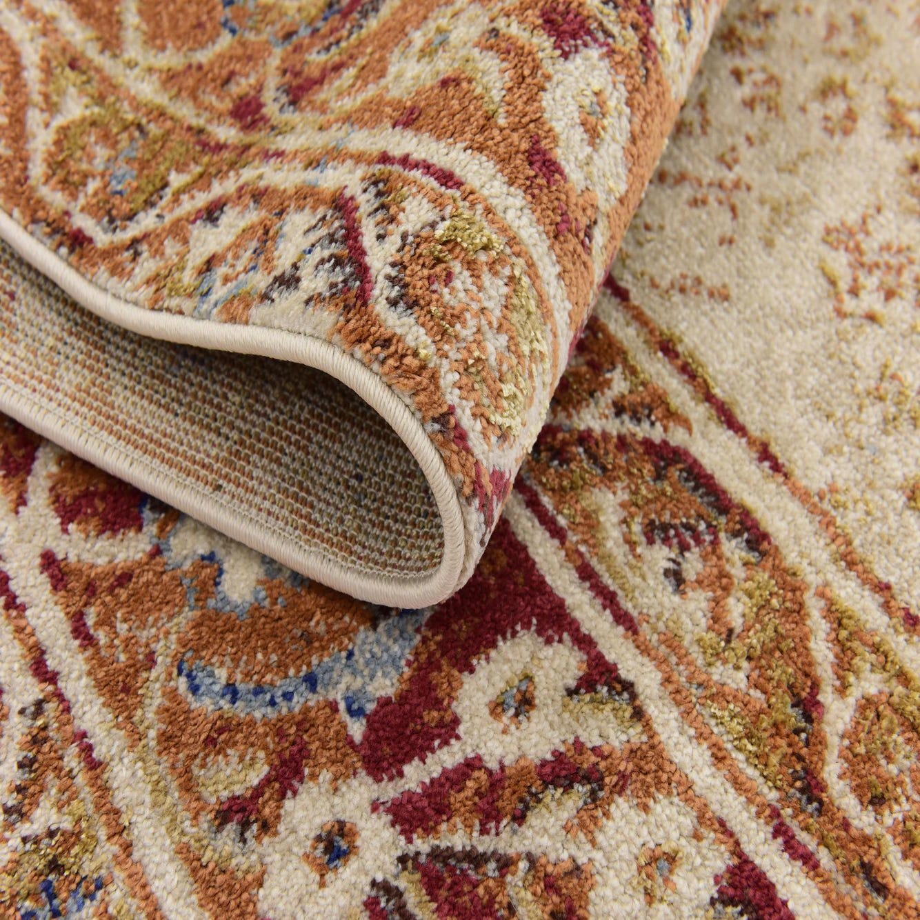 The Eden Collection offers a beautifully machine-woven rug that features a rich color palette including ivory, beige, blue, orange, red, and brown accents on an ivory background. This 5x8 area rug showcases a balanced composition with a central field that takes on a lightly distressed look, adding character and a sense of aged beauty to its surface.