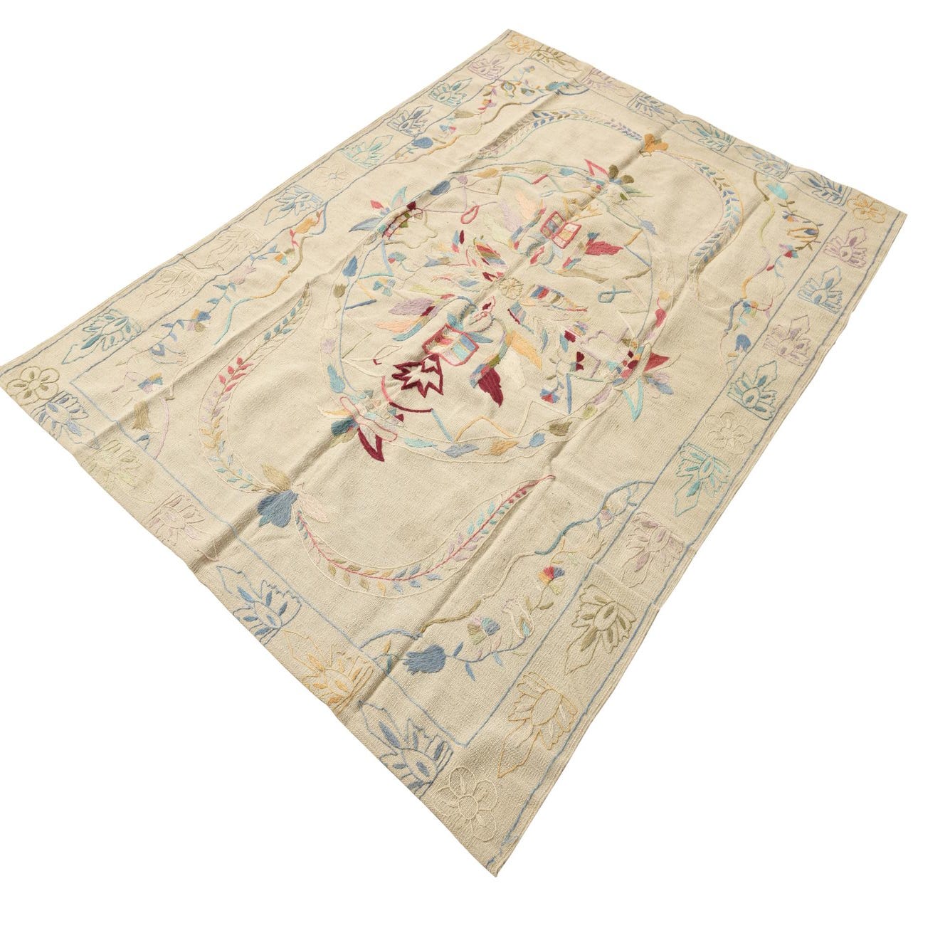 Primary color is Ivory. Colors in this rug include: Ivory, Beige, Blue, Brown, Burgundy, Light Brown, Light Green, Light Salmon, Light Blue, Yellow, Teal, Terracotta, Turquoise, Gold, Gray, Green.