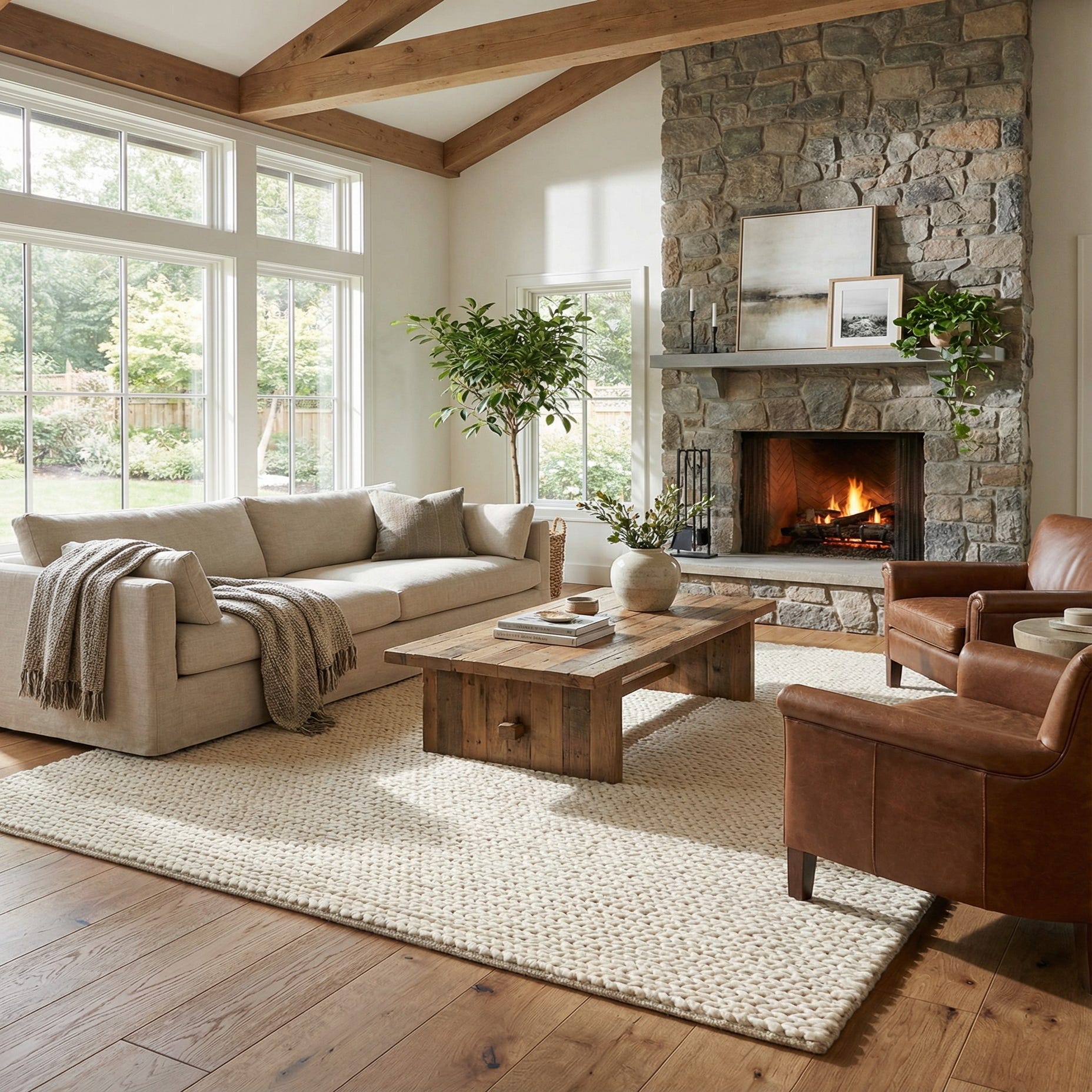 The low, looped weave has a tactile, knitted feel that adds warmth and texture without bulk. Use it to anchor a neutral living room grouping under a sofa and coffee table, layer it at the foot of a bed for a serene bedroom palette, or place it in a reading nook or entry to introduce soft, natural texture. It works especially well with Scandinavian, coastal, and modern farmhouse schemes and pairs cleanly with wood, rattan, or streamlined metal furnishings.