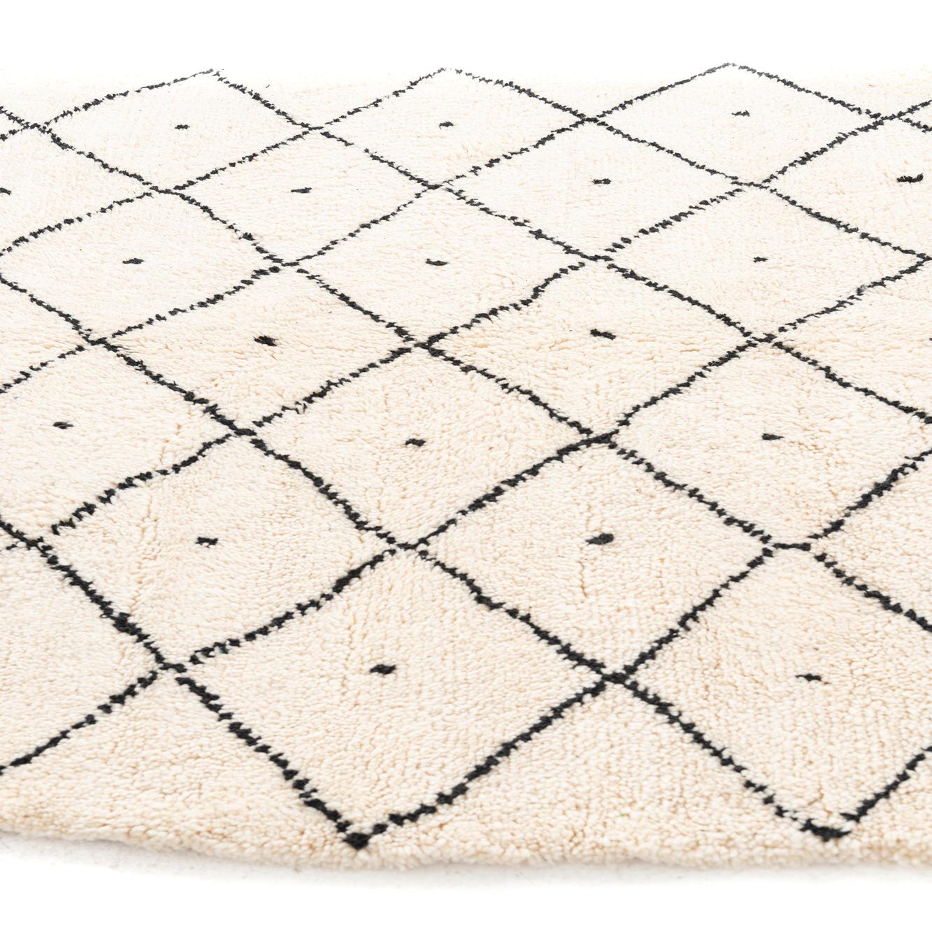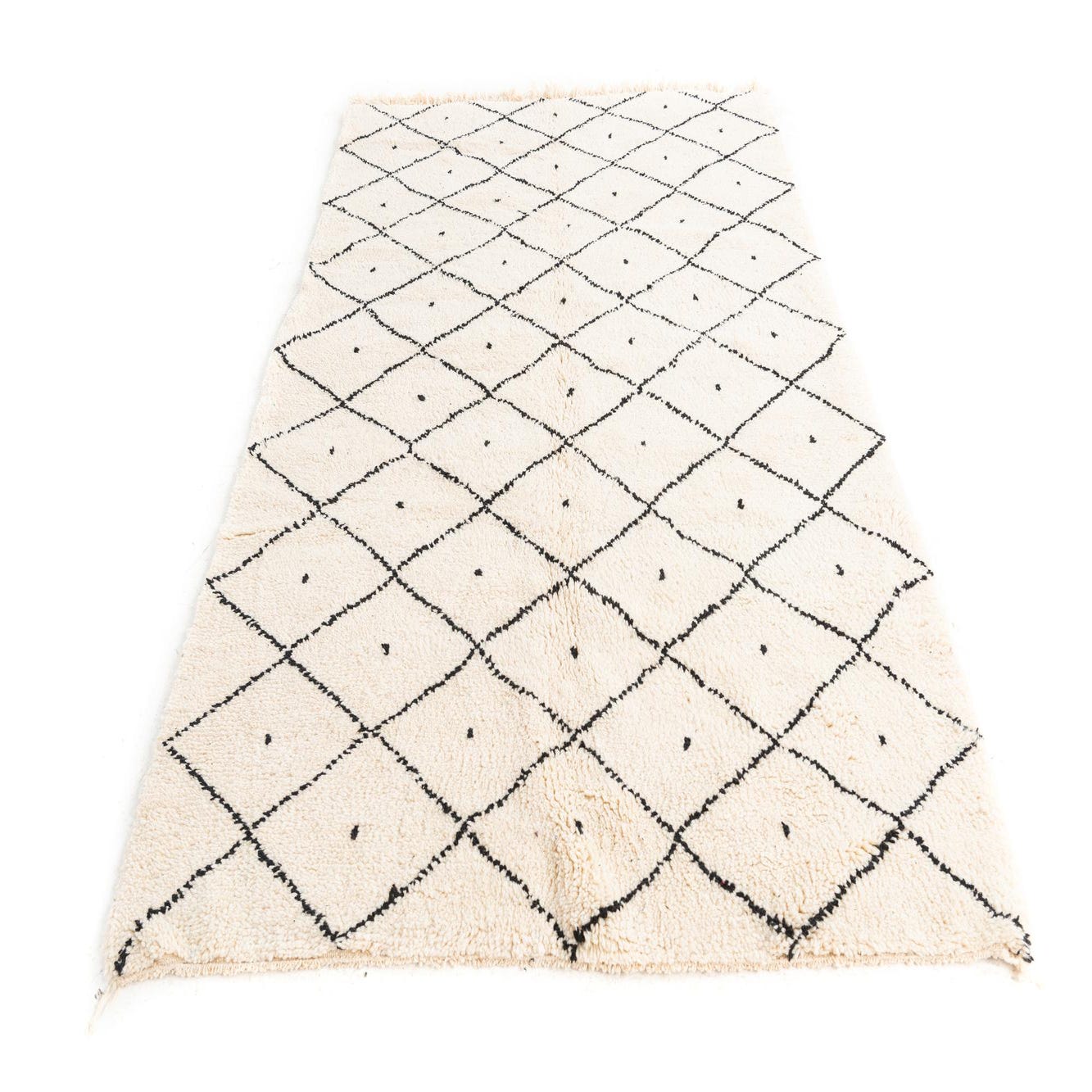 This Moroccan collection rug presents a timeless diamond lattice pattern that enhances its handcrafted appeal. With a classic color palette of ivory and black, the design offers a crisp contrast that is versatile for various decorating schemes. Crafted from 100% wool, the hand-knotted construction of this 5x8 piece promises durability and a tactile comfort underfoot.
