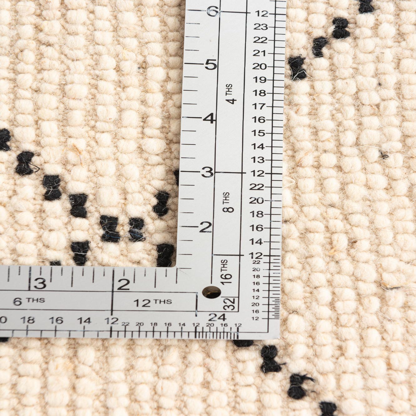 Primary color is Ivory. Colors in this rug include: Ivory, Black.