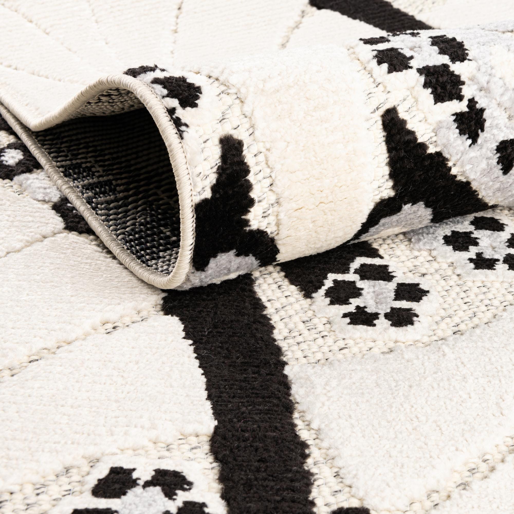 Primary color is Ivory. Colors in this rug include: Ivory, Black, Gray.