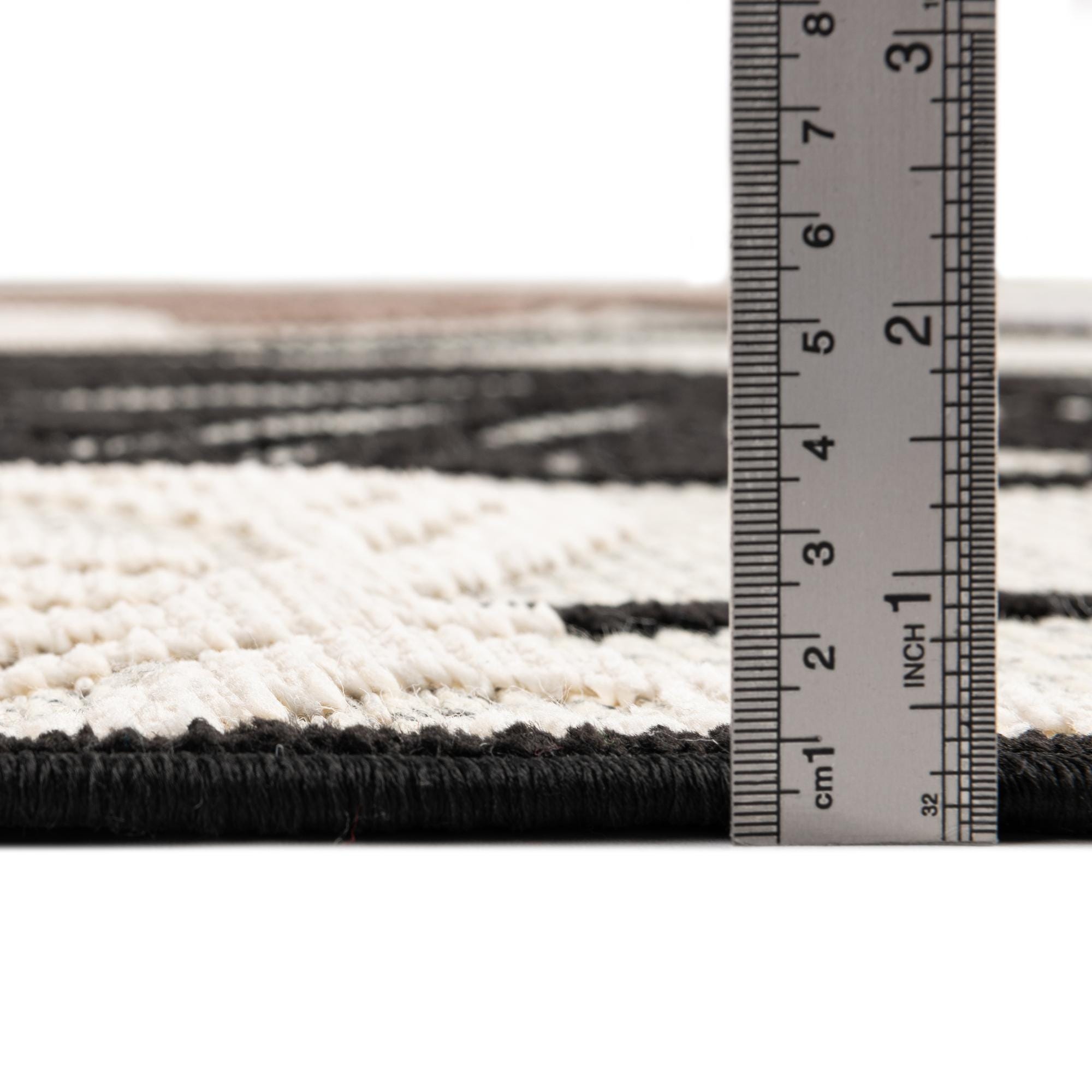 Primary color is Ivory. Colors in this rug include: Ivory, Black, Gray, Light Brown.