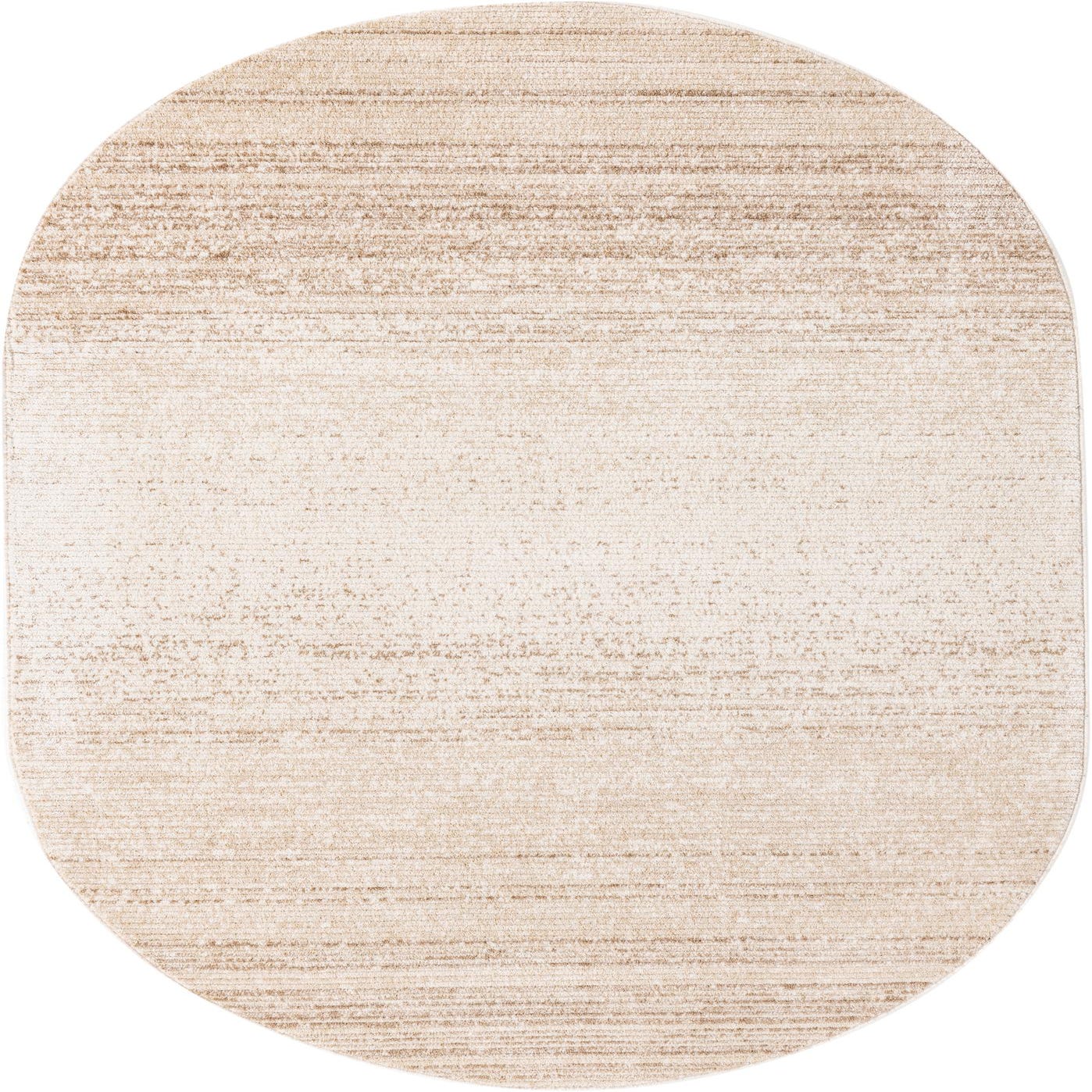An oval 5' 3 x 8' 0 ivory and cream modern area rug with a textured, subtly striped pattern.