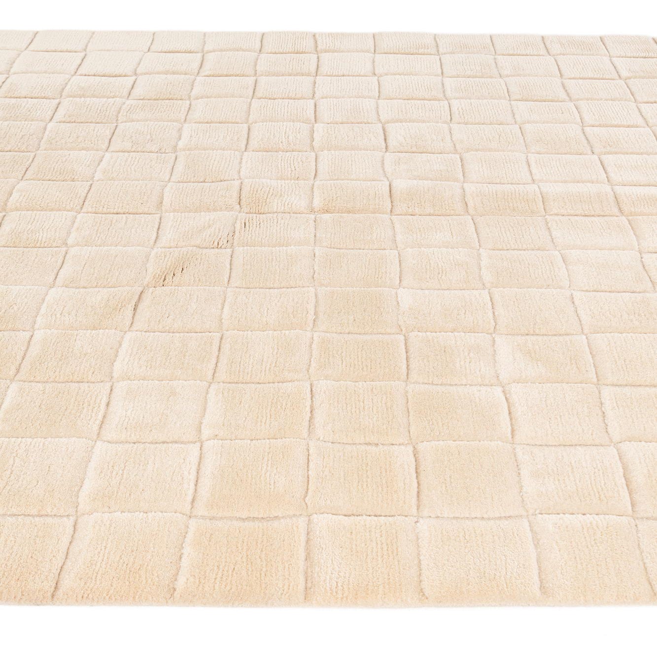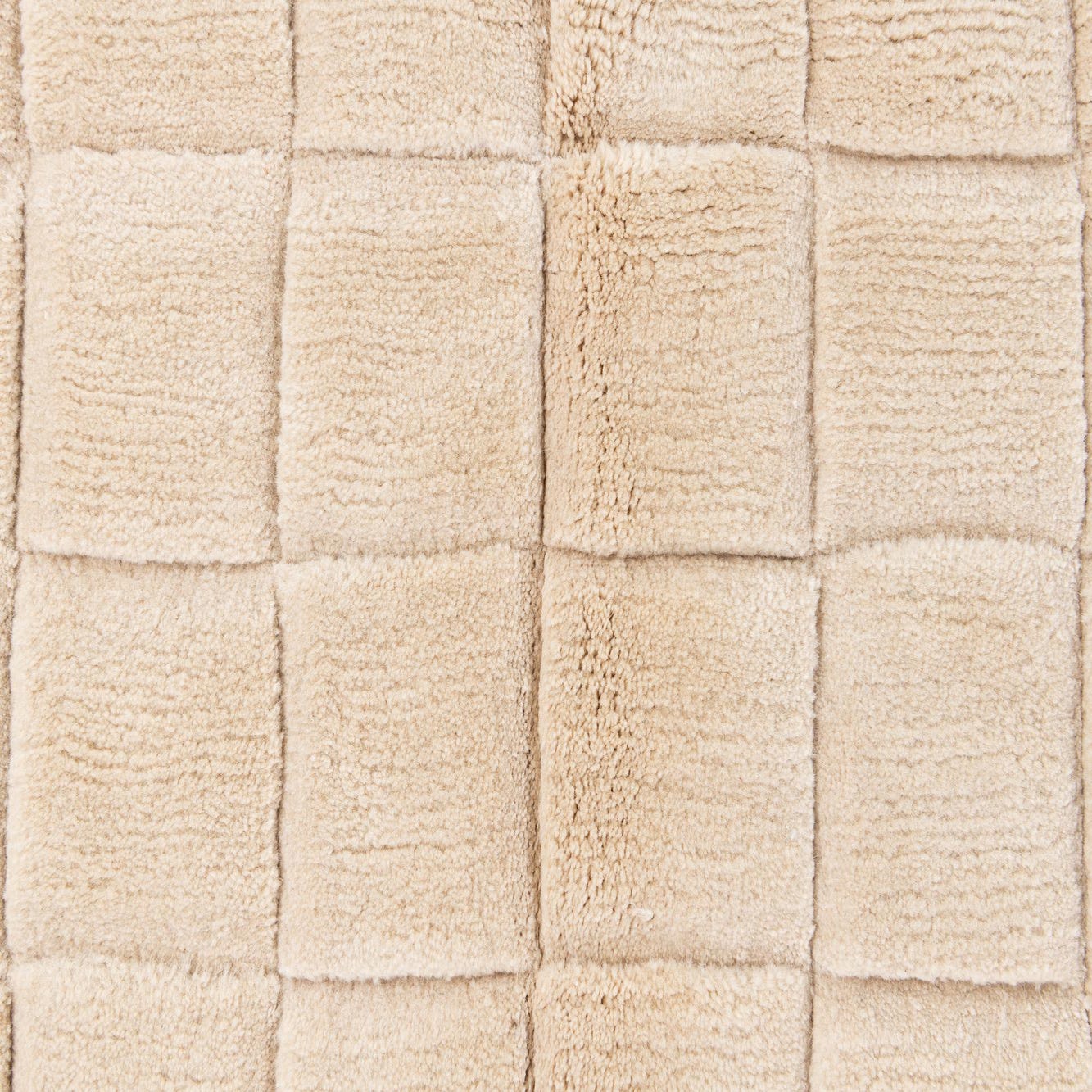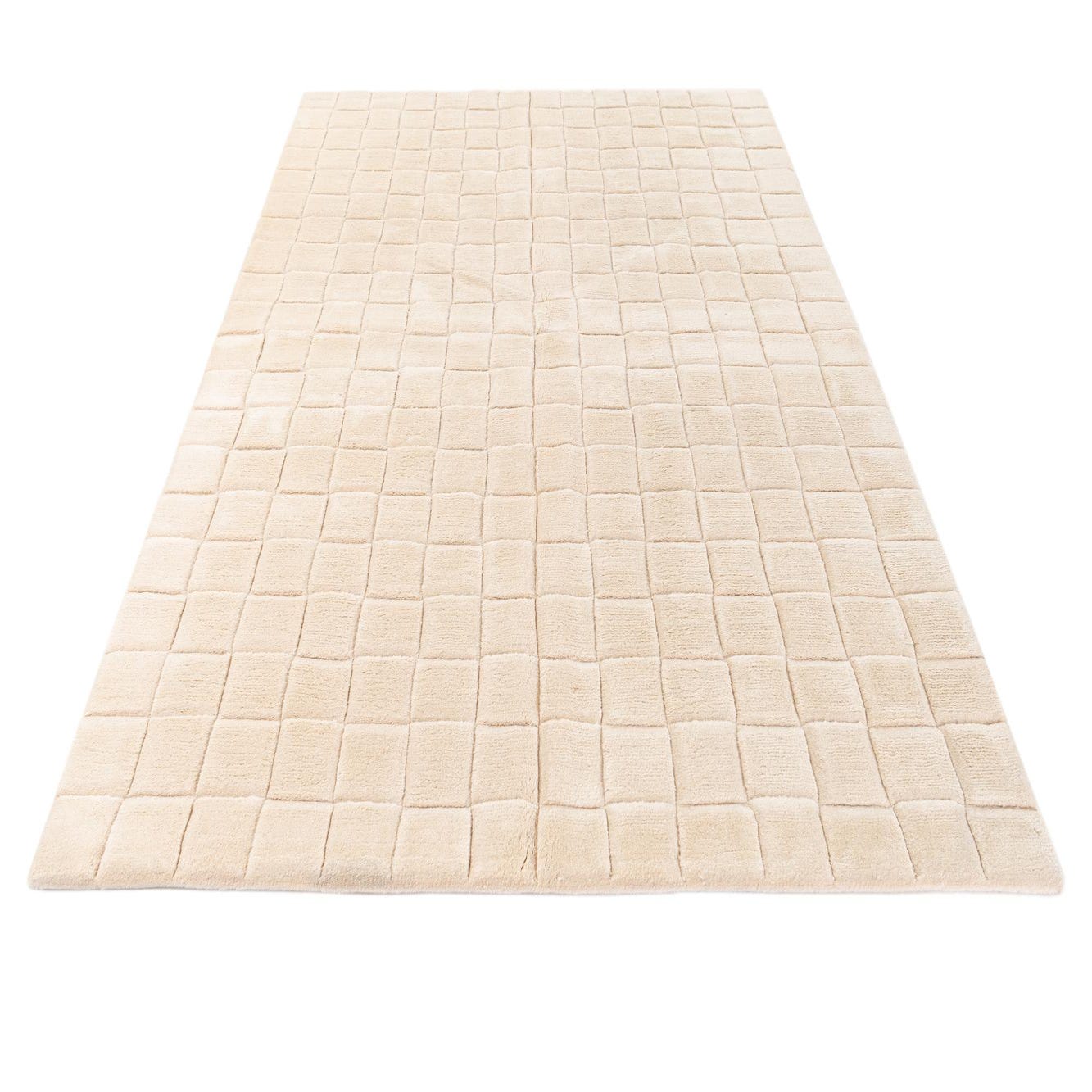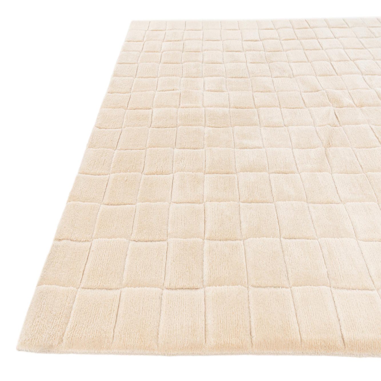 A 5x8 rectangular ivory wool rug with a modern grid pattern, perfect for a living room or bedroom.