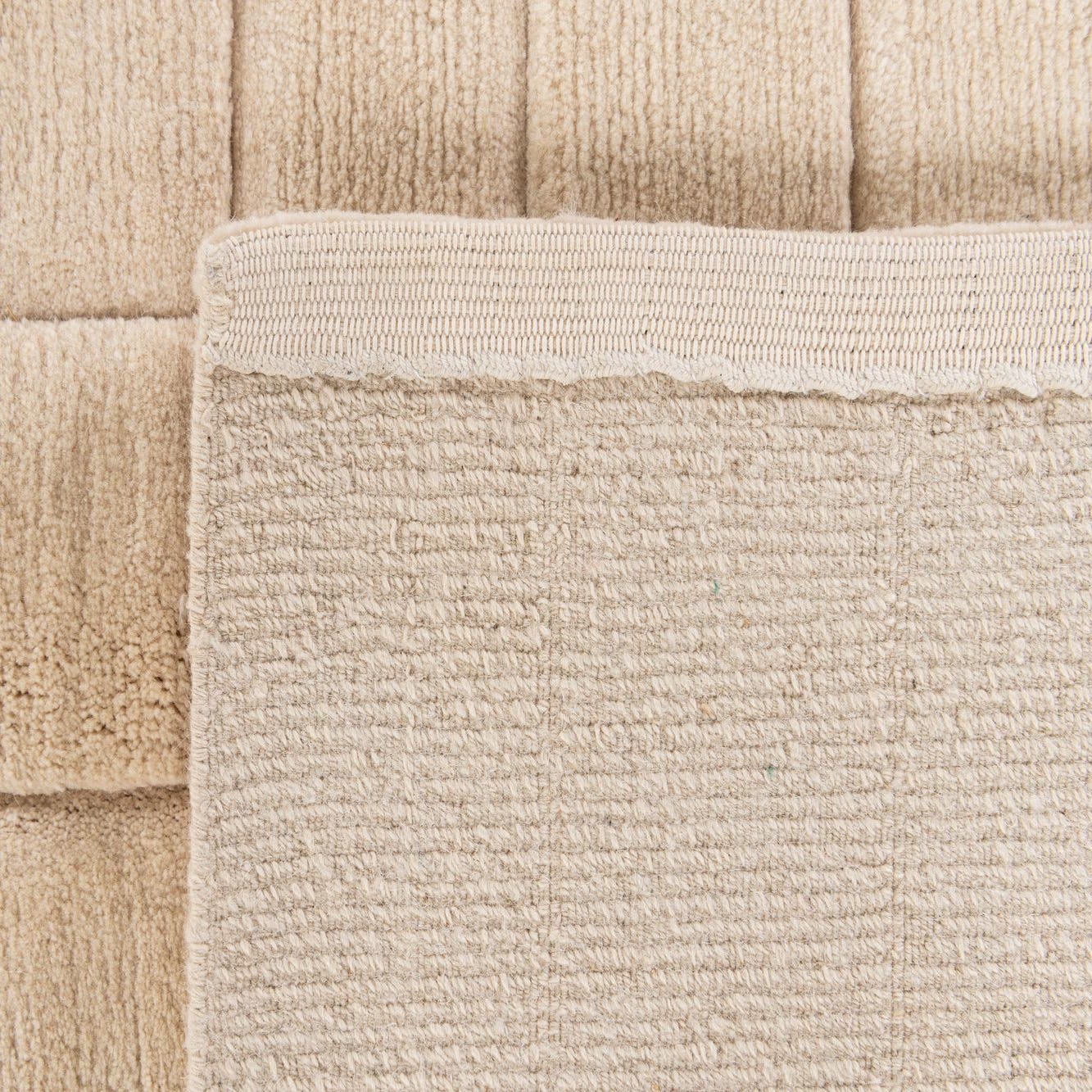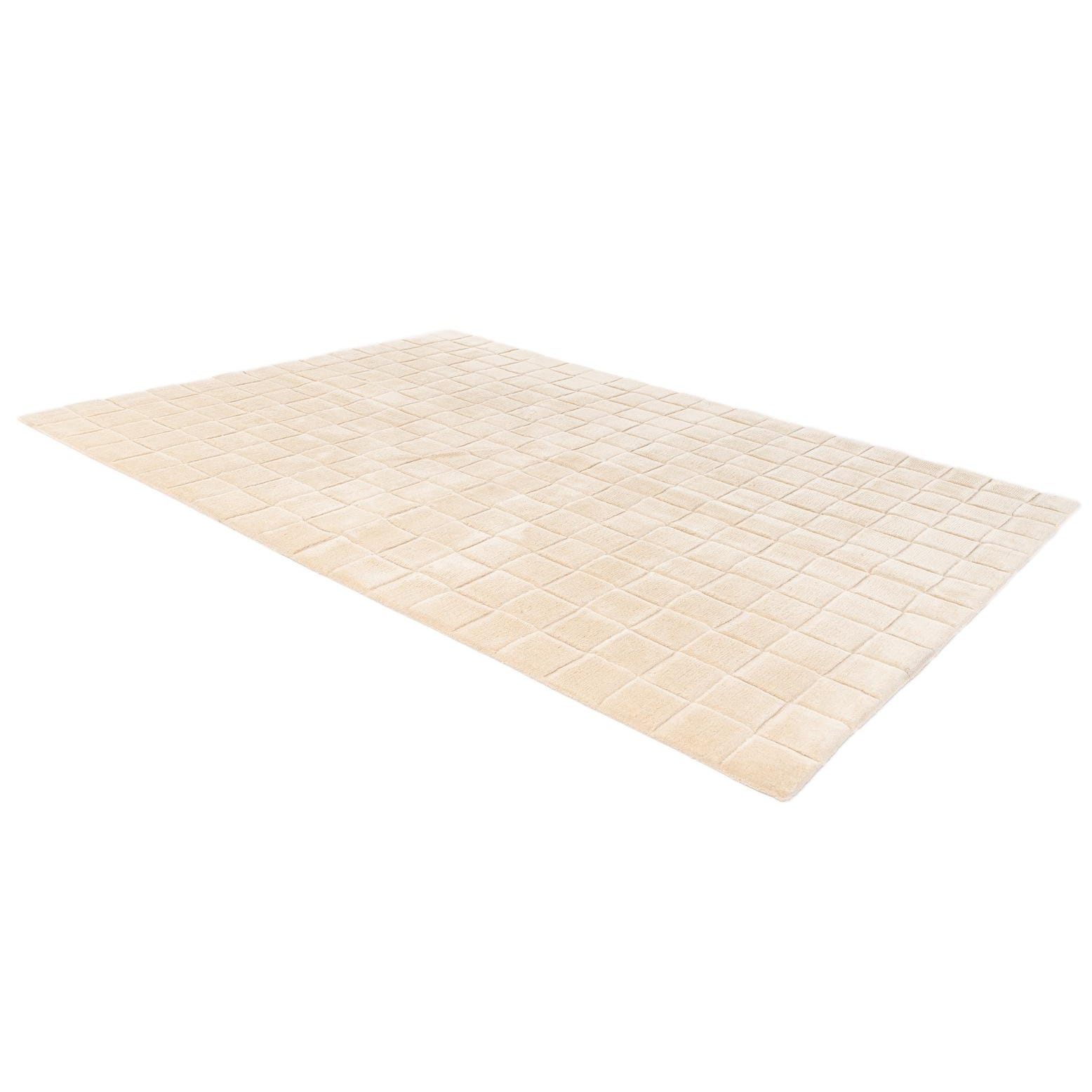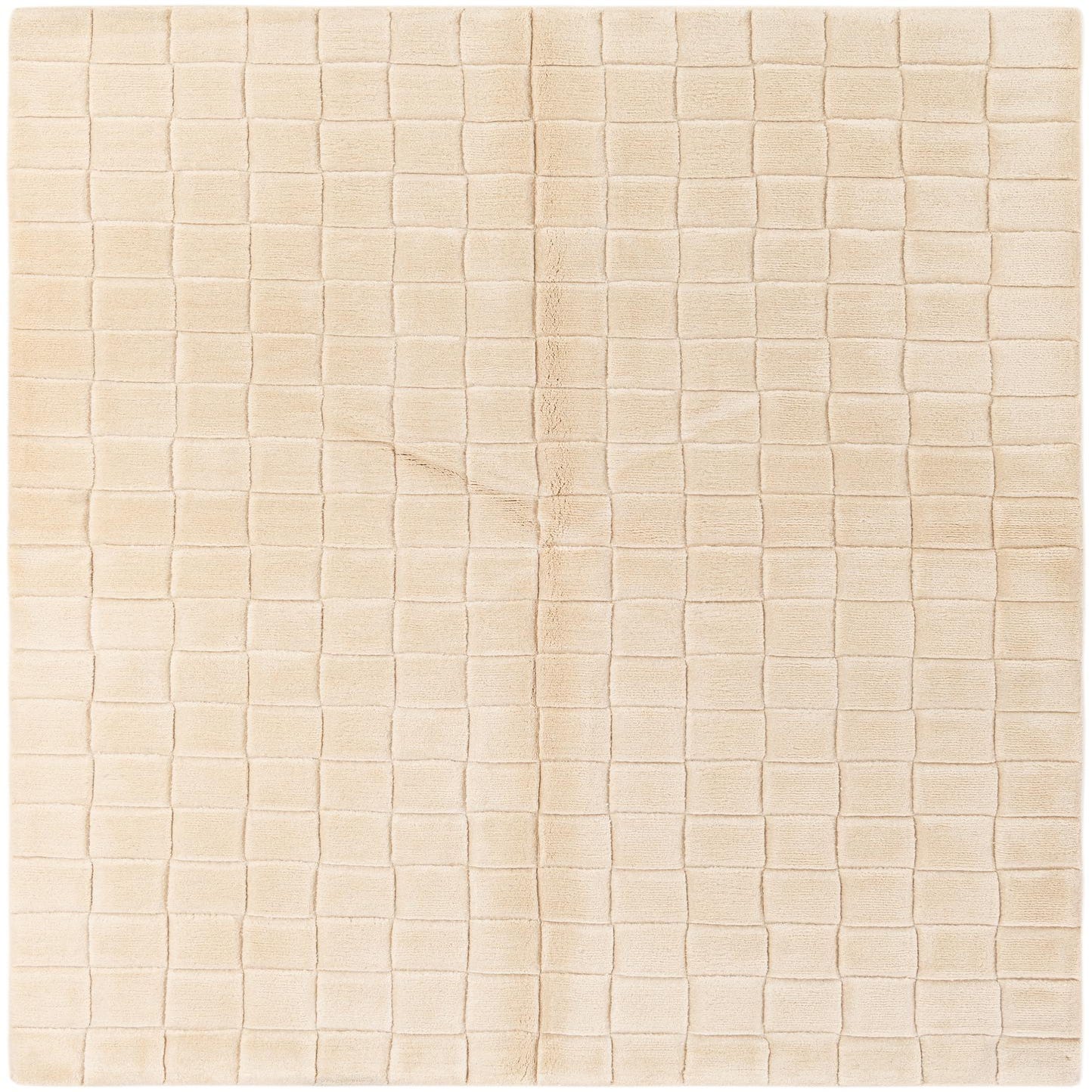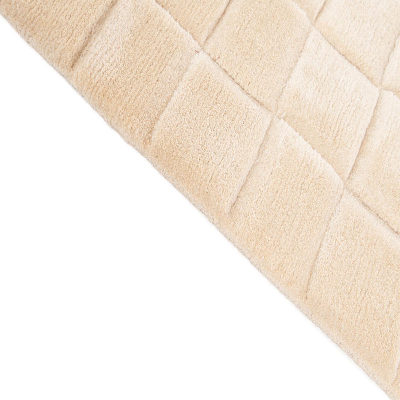 A 5x8 rectangular ivory wool rug with a modern grid pattern, perfect for a living room or bedroom.