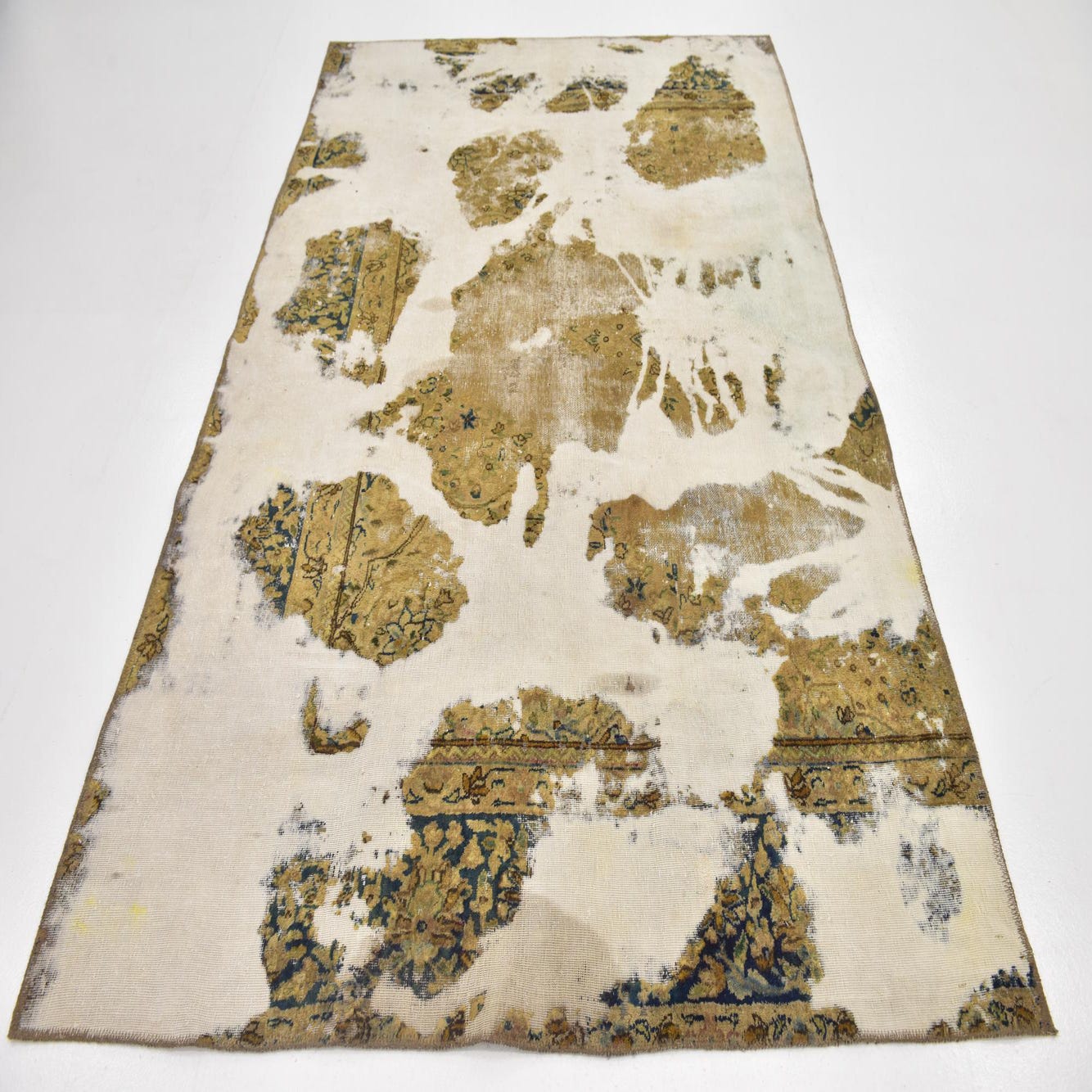 This Persian Ultra Vintage rug is an antique Persian Rug that has been washed, over-dyed, and then shaved down to a low pile. Look at the detail pictures to fully appreciate the uniqueness of this piece.