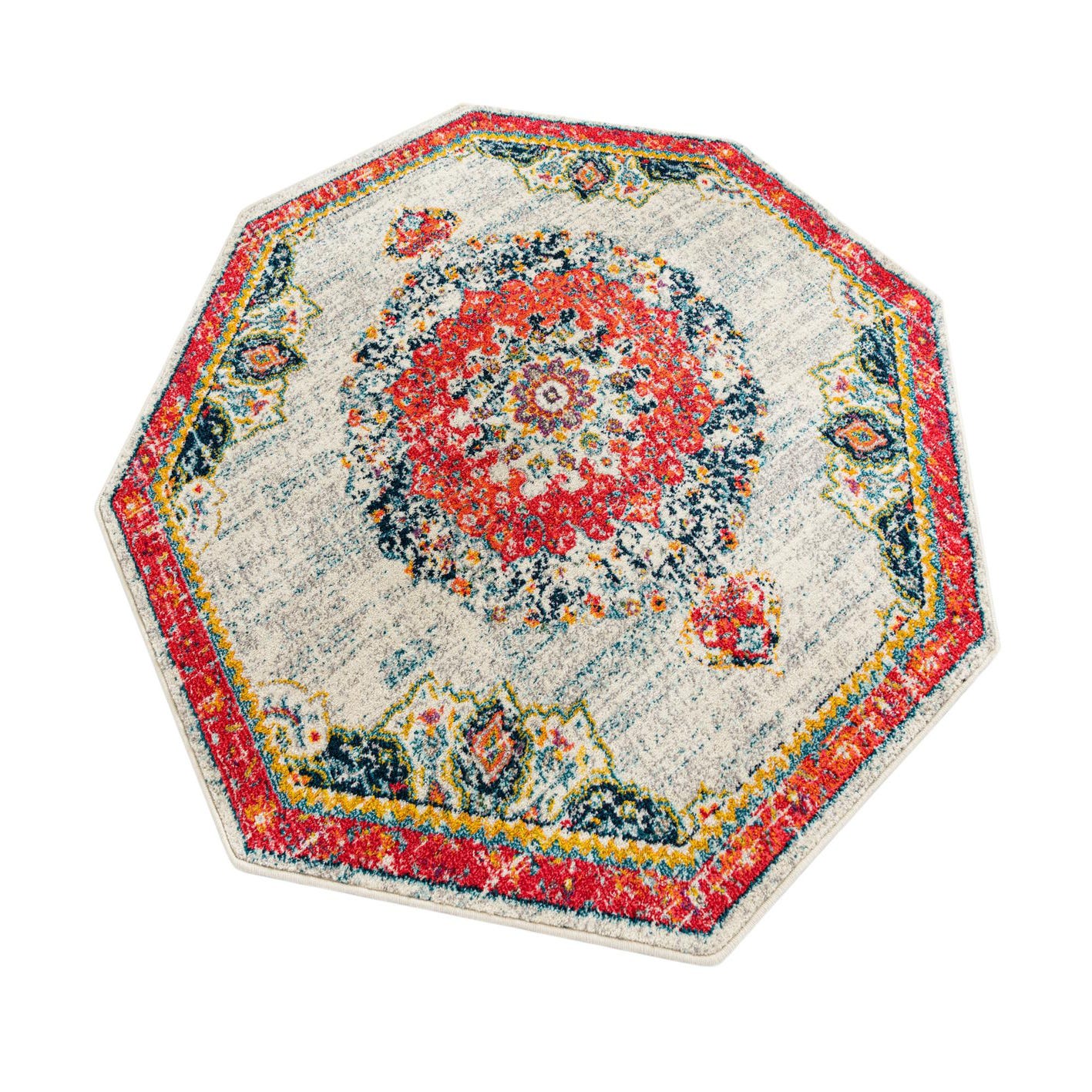 The rug’s texture is designed to withstand high foot traffic while maintaining its appearance, offering both visual interest and tactile comfort. Given the octagonal shape, this rug lends itself to being a focal point in a room. Its engaging color palette and classic pattern make it suitable for various decor scenarios from traditional to eclectic to bohemian stylings. The rug can be placed in living areas to anchor furniture arrangements, under dining tables, or in open foyer spaces to welcome guests with a statement piece that unifies the room's aesthetic.