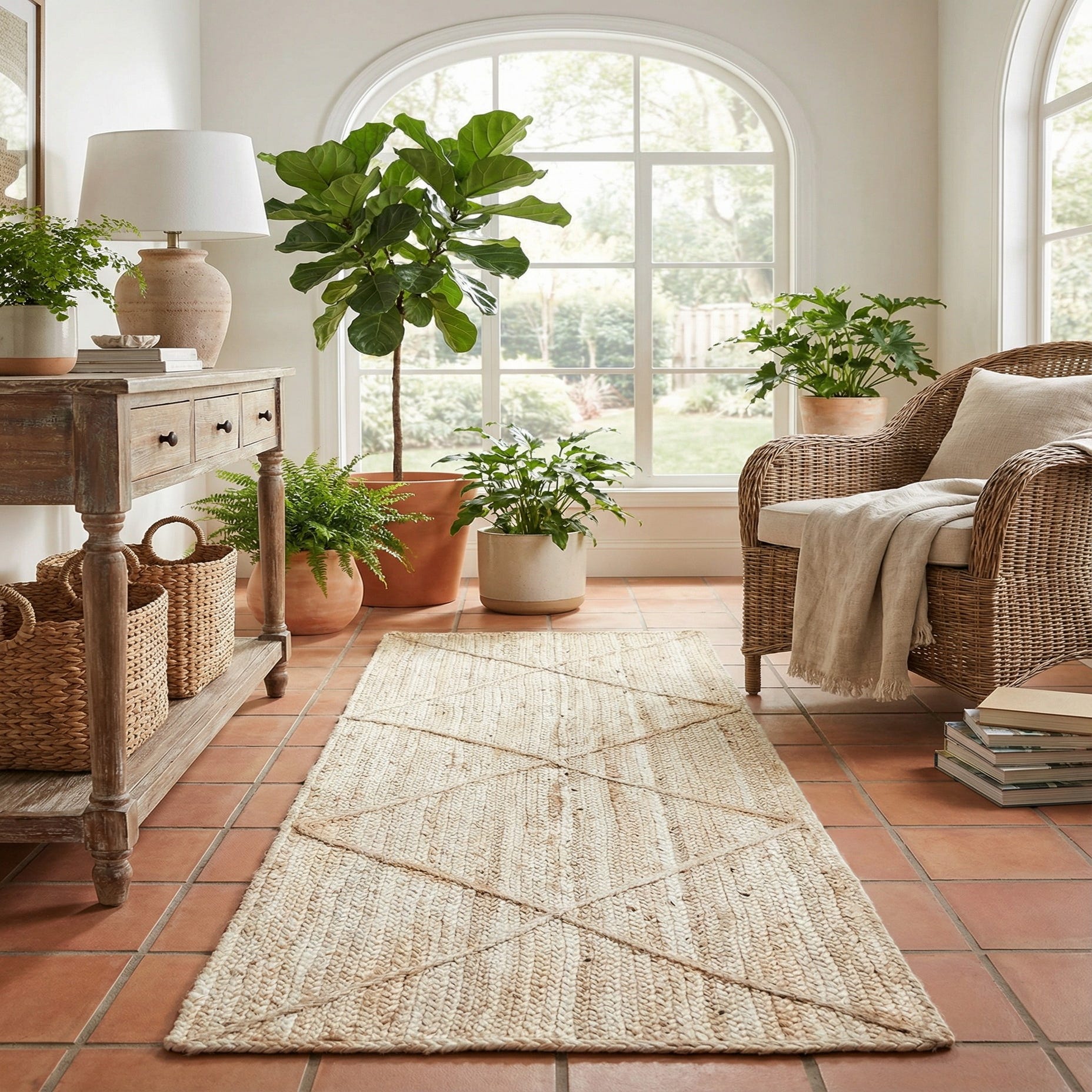 This runner suits casual, natural interiors—think coastal cottages, modern farmhouse layouts, or Scandinavian-inspired spaces that favor light woods and neutral linens. Use it to define a hallway or entry, layer it beneath a narrow console, or place it along a kitchen aisle to introduce texture and a calming, organic look.
