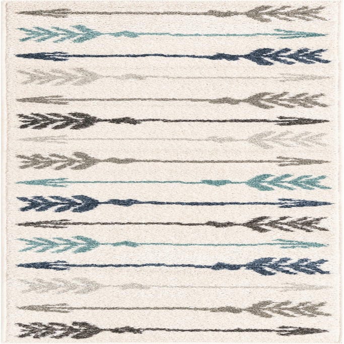 Primary color is Ivory. Colors in this rug include: Ivory, Gray, Navy Blue, Light Green, Black.