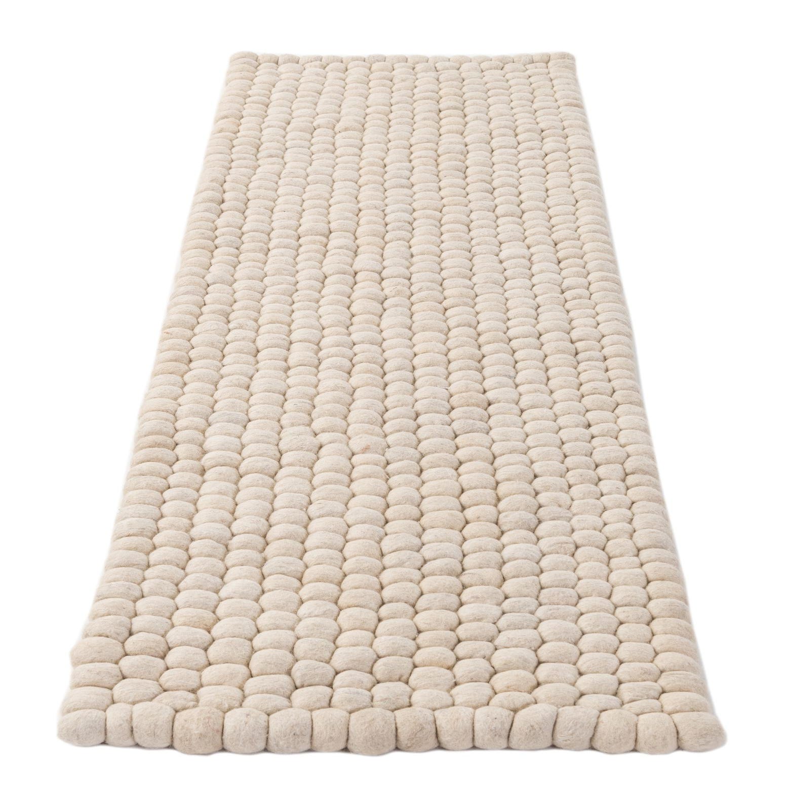 A 6 ft runner rug from the Felt Ball collection, featuring a textured pattern of ivory and cream felted wool balls, perfect for a modern hallway.