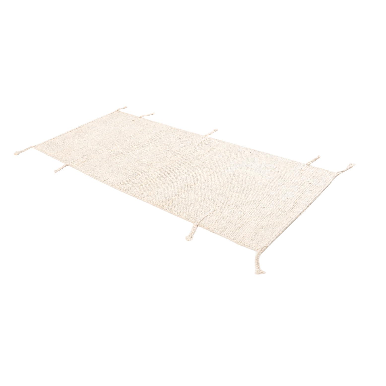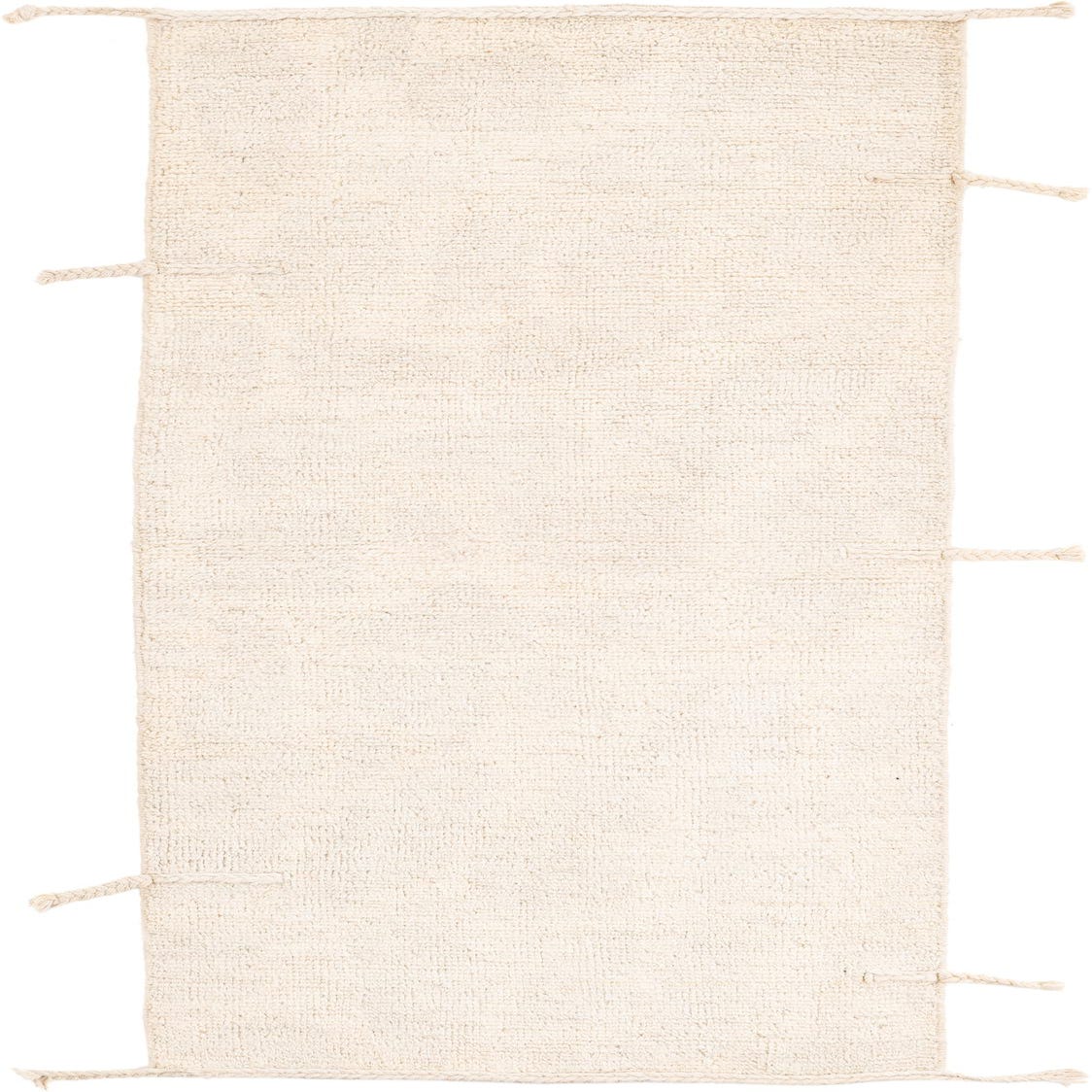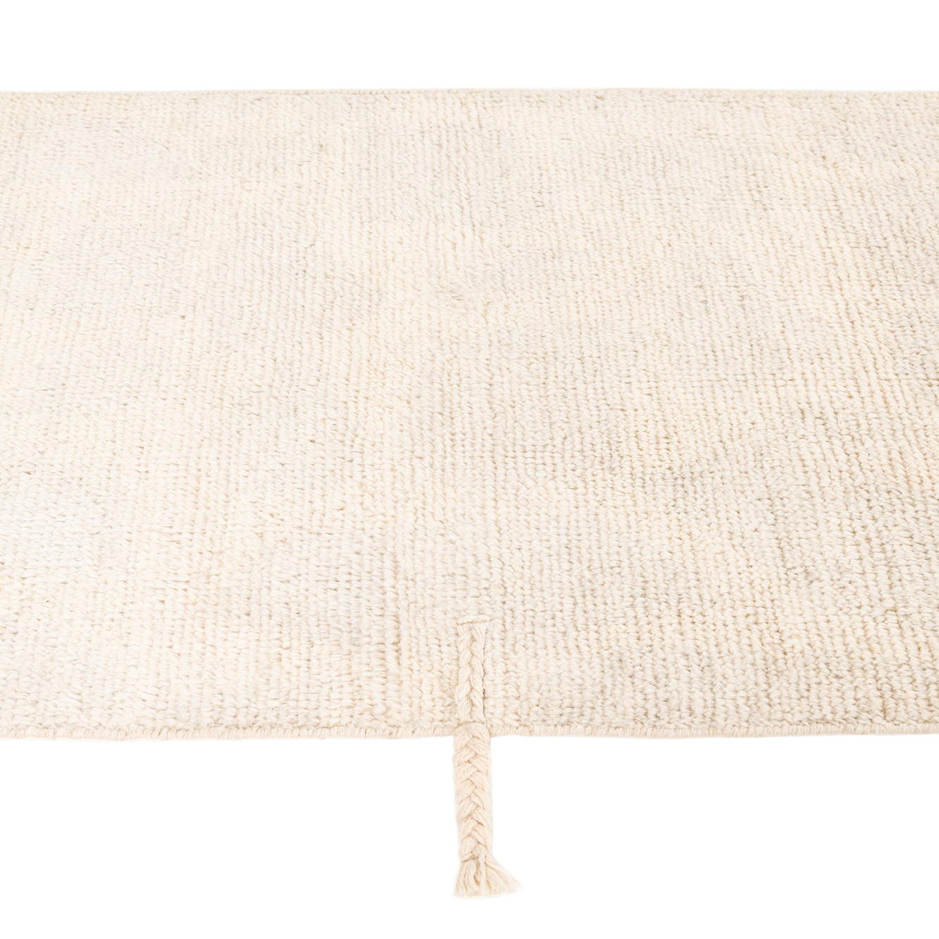 A 6 ft runner rug from the Moroccan collection, featuring a plush ivory shag texture and braided tassels.