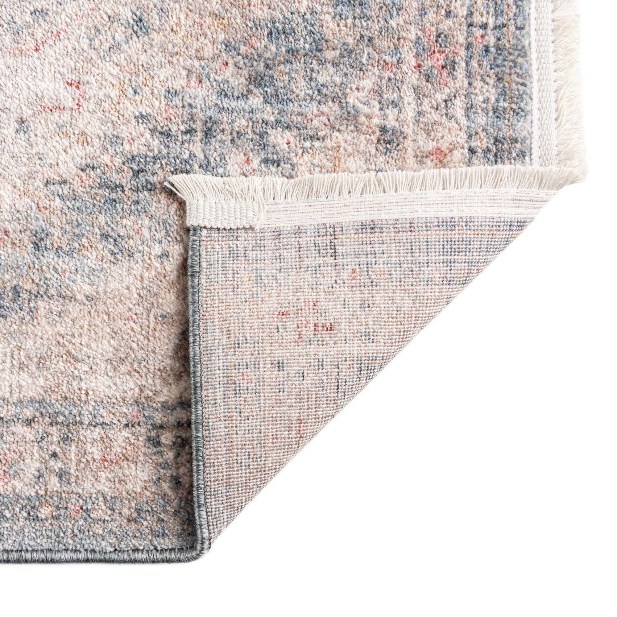 Primary color is Ivory. Colors in this rug include: Ivory, Blue, Light Blue, Navy Blue.