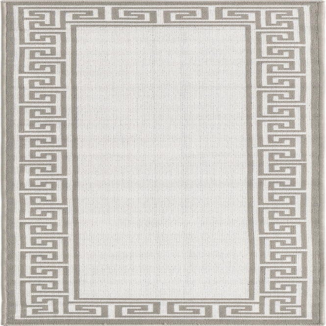 A 6 ft runner rug with a cream center and a gray Greek key border, suitable for a hallway or patio.