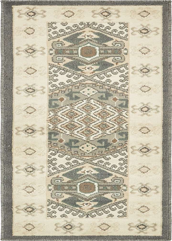 Primary color is Ivory. Colors in this rug include: Ivory, Beige, Brown, Gray, Green.