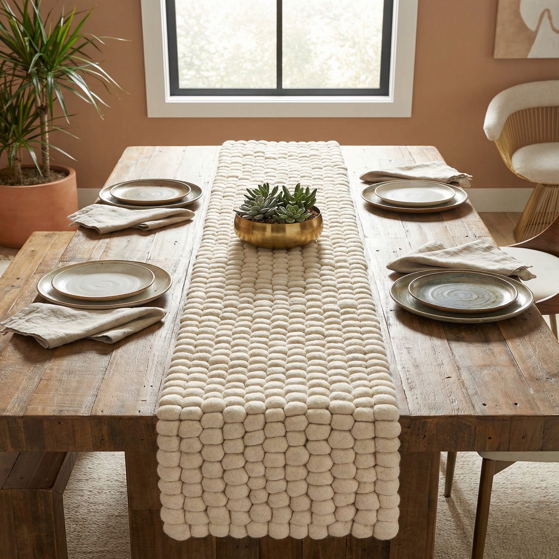 1' 2 x 6' 1 Hand Woven Felt Ball Wool Table Runner Rug