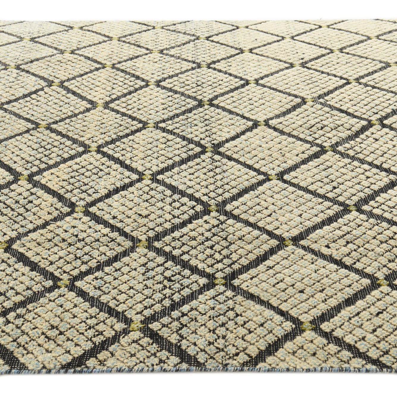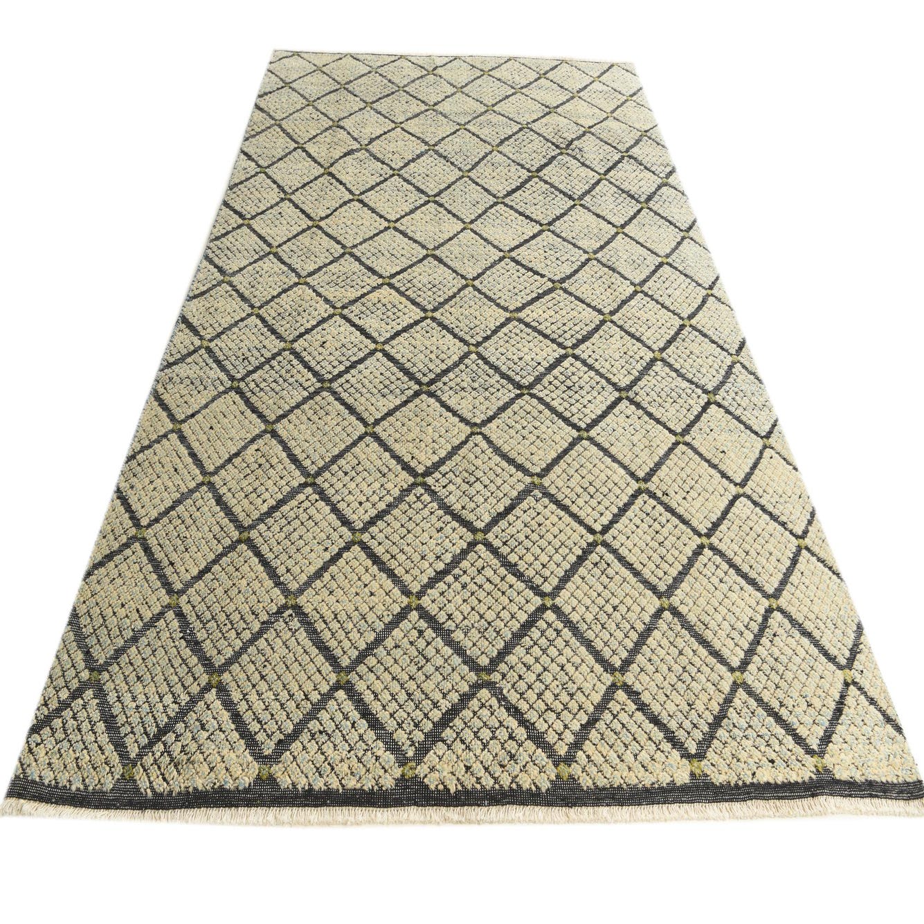 A rectangular 6x9 Darya rug featuring an abstract diamond pattern in ivory, cream, and black with subtle green accents.