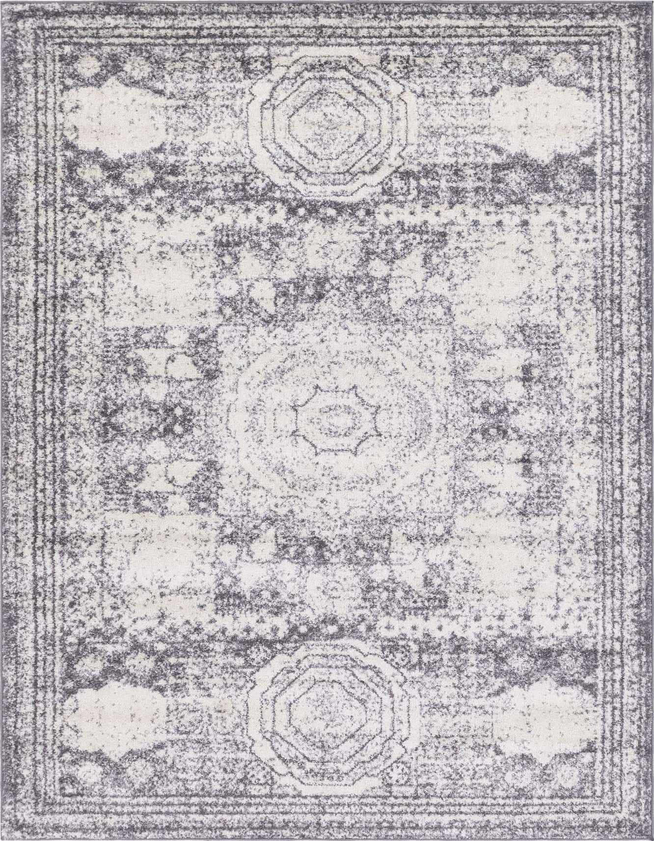 Primary color is Ivory. Colors in this rug include: Ivory, Gray.