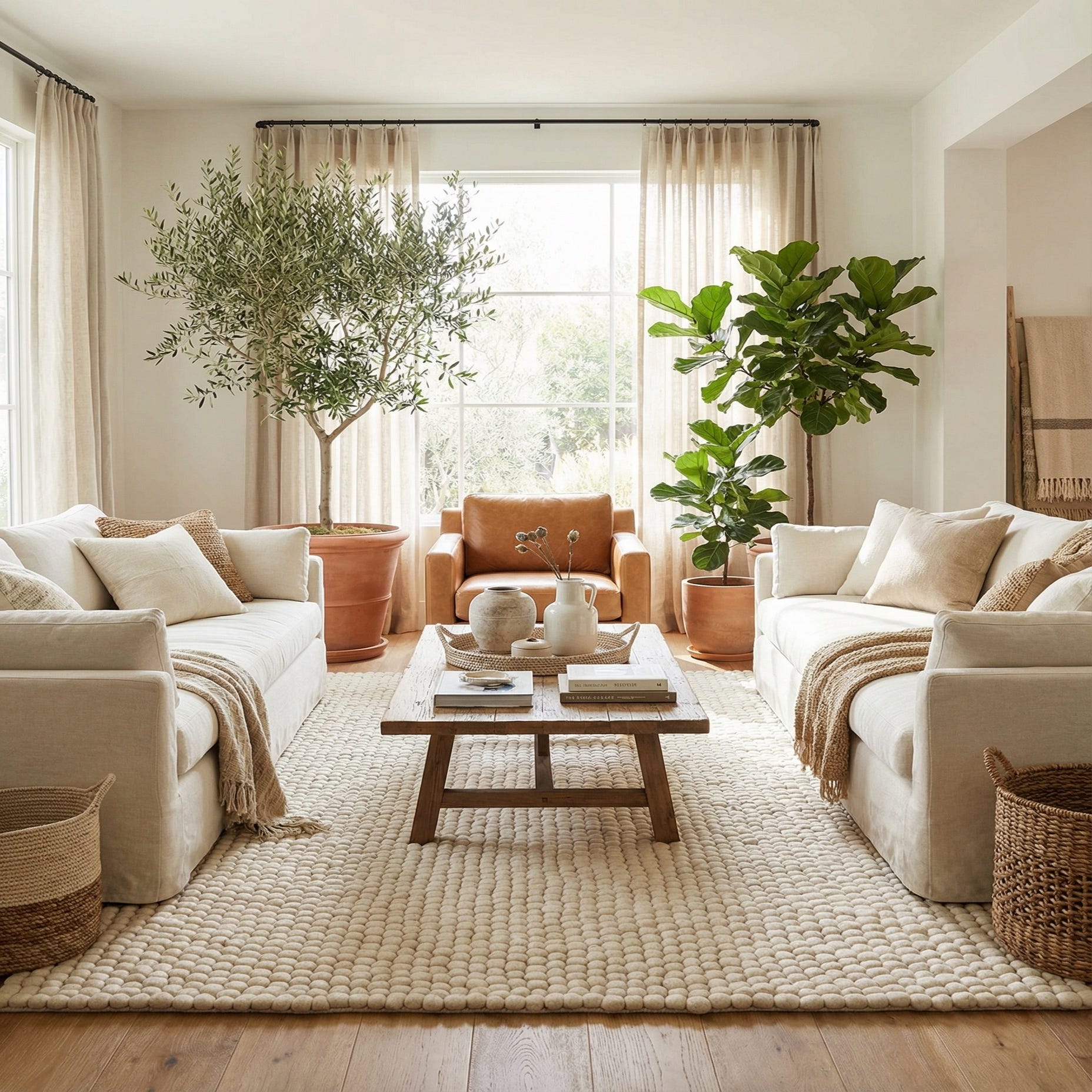 Place this rug beneath a low coffee table in a living room, layered under a bed to add warmth to a neutral bedroom, or tuck it into a cozy reading nook to introduce subtle texture. It pairs well with light woods, linen upholstery, woven baskets, and simple metal accents for contemporary, coastal, or modern farmhouse interiors, and it can also serve as a neutral base for layered bohemian schemes.