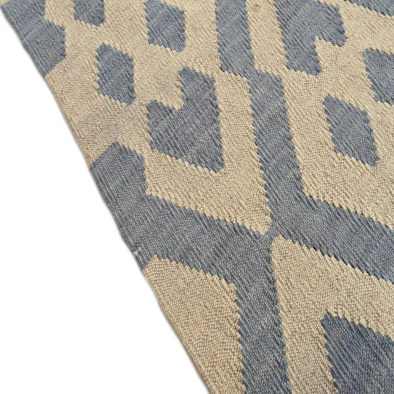The texture of the rug, characteristic of handwoven wool, lends a natural, tactile quality to the piece, making it both inviting and aesthetically pleasing. The flatweave construction offers a low profile, making it suitable for a variety of settings, including those with high foot traffic or under furniture.