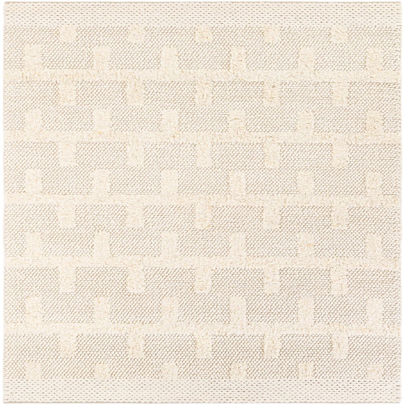 A 6x9 rectangular ivory and cream modern area rug with a textured abstract geometric pattern.