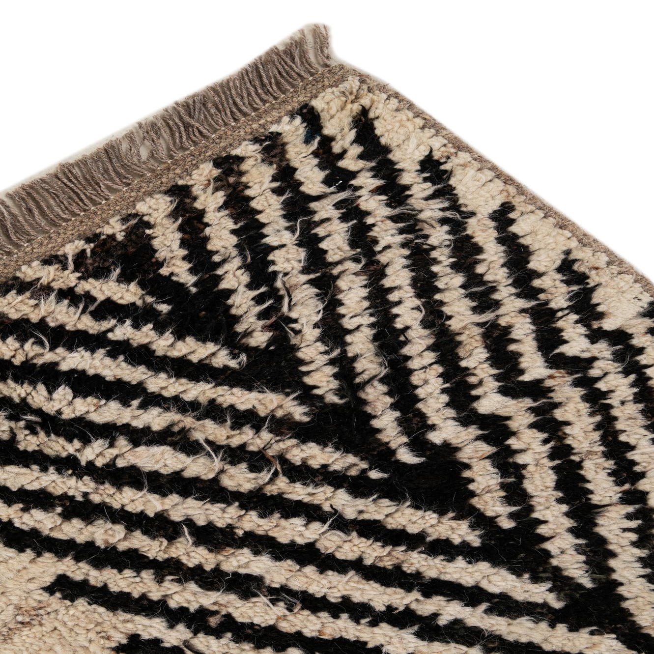 Hand-knotted, 100% wool, the pile has a dense, tactile quality that feels comfortably underfoot while showing subtle variations in texture from the handwork. The rug complements contemporary, bohemian, and mid-century interiors; it will anchor a sofa and coffee table in a living room, add warmth layered at the foot of a bed, or define a conversation area in an office. Pair it with light woods, black metal accents, and natural linens for a cohesive look.