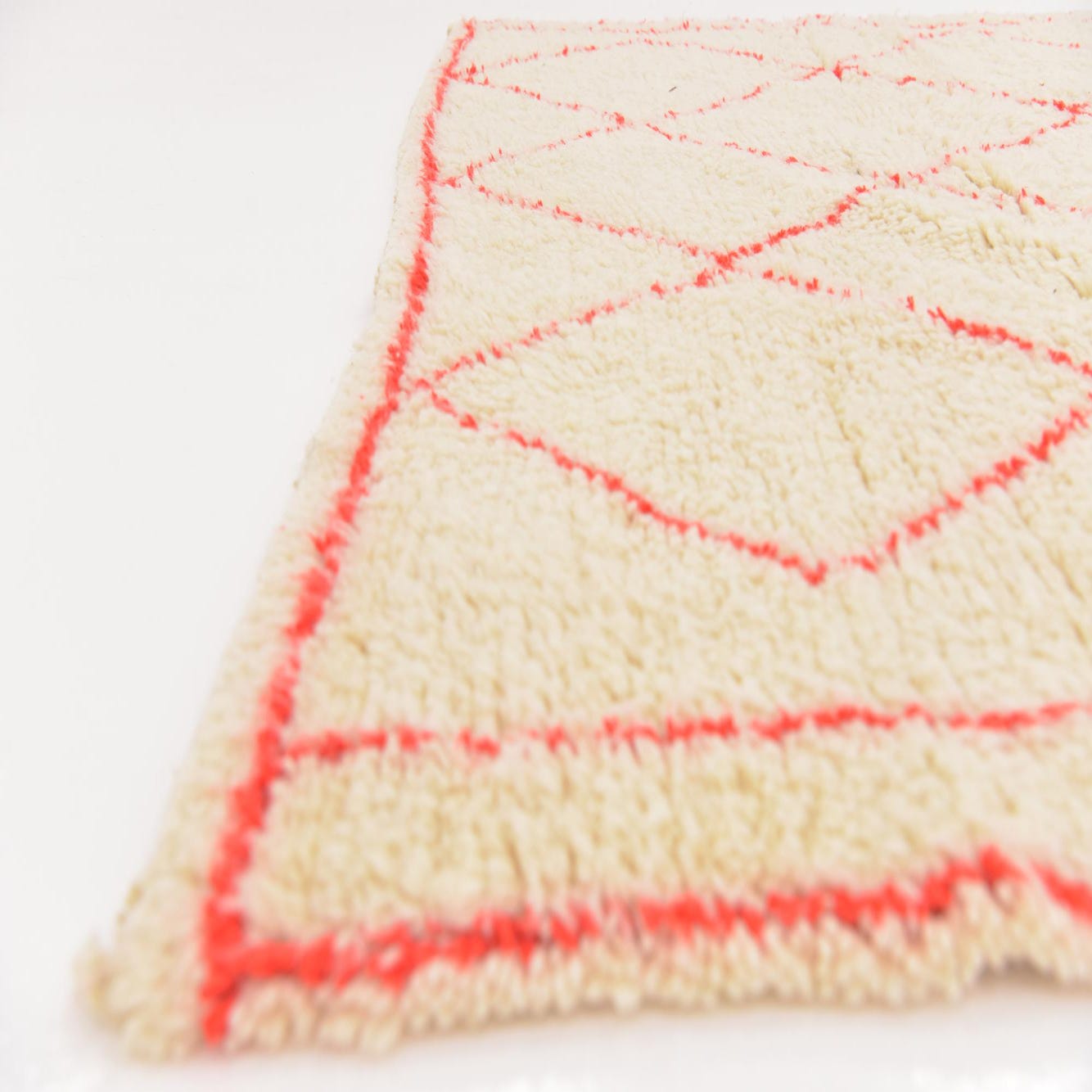 Primary color is Ivory. Colors in this rug include: Ivory, Red.