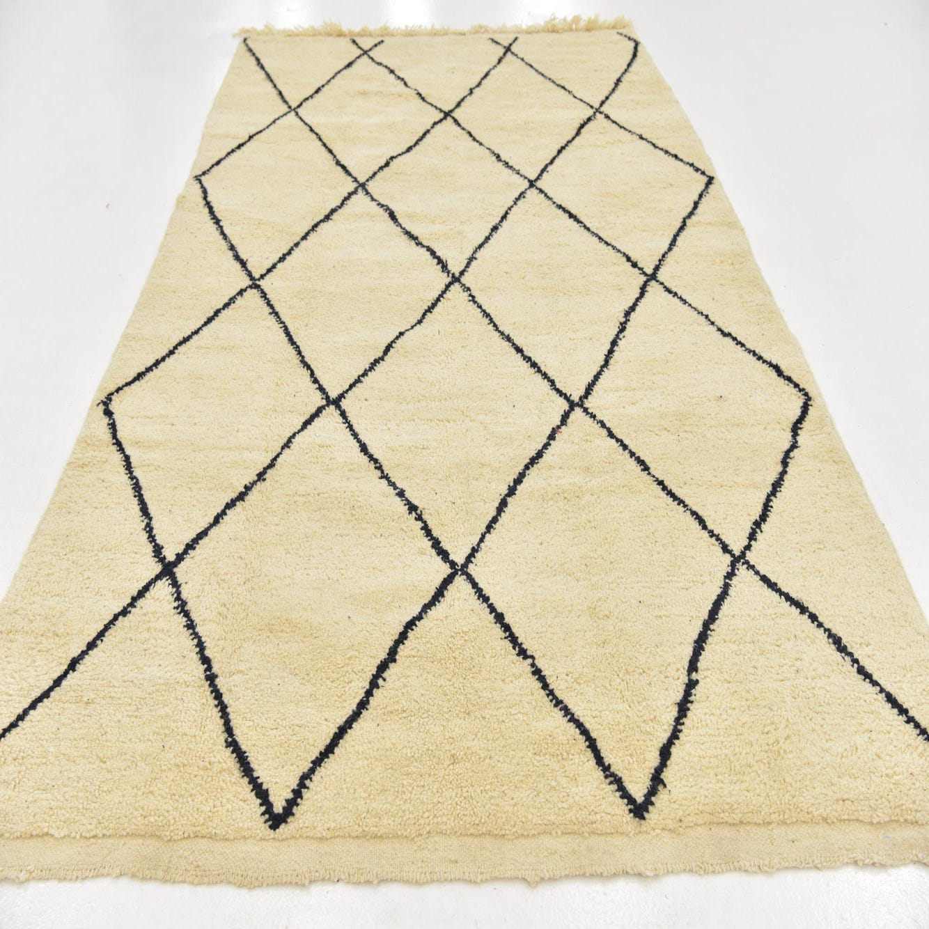 A 6x9 rectangular ivory shag rug with a bold black diamond pattern, ideal for a modern living room.