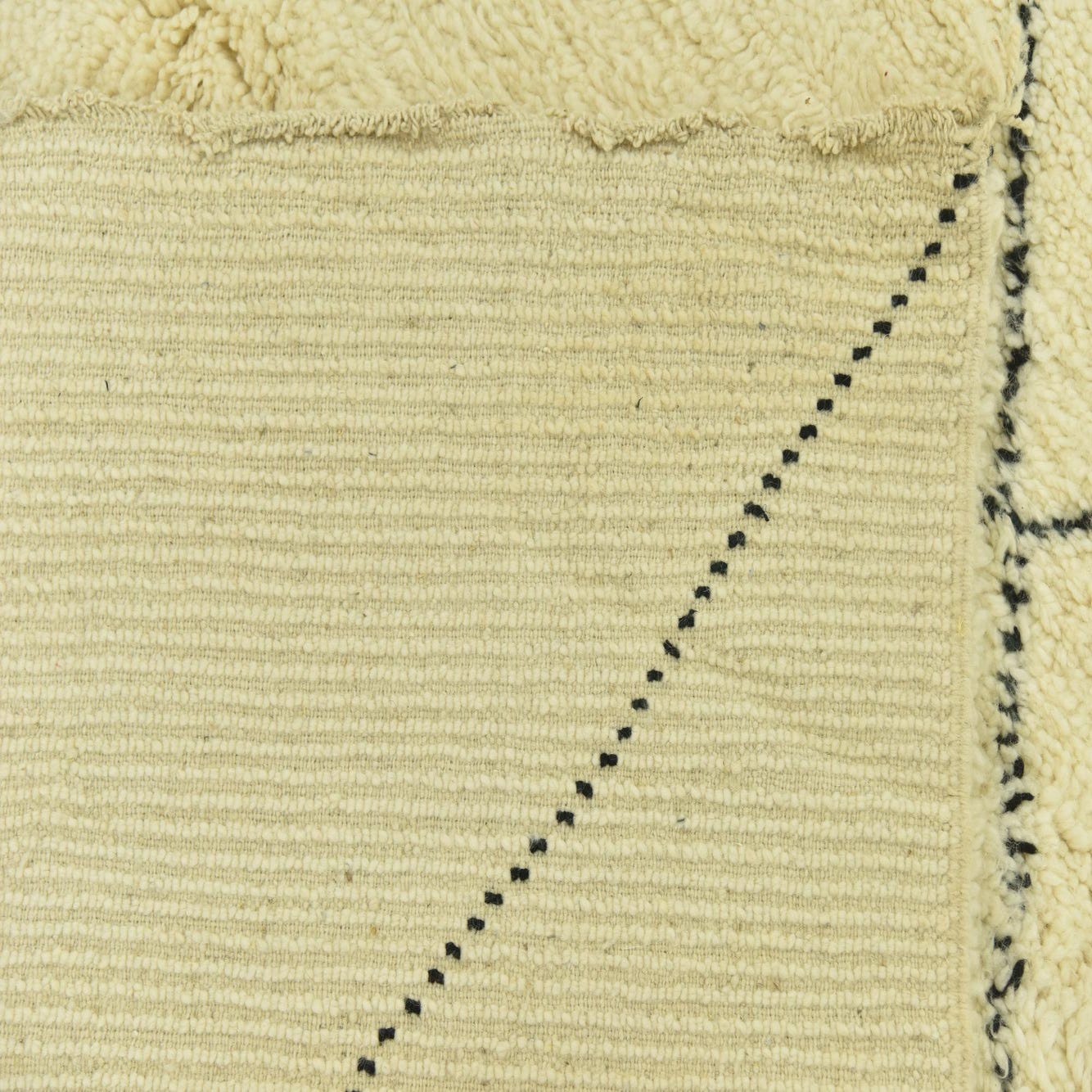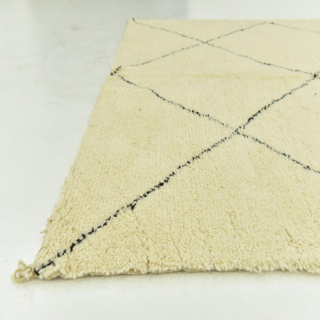 Suitable for anchoring living spaces, dining areas, or bedrooms, this rug would pair beautifully with minimalist décor to allow its pattern to stand out or with more eclectic furnishings to create a layered, global-inspired look. Whether incorporated into monochrome schemes or contrasted against colored interiors, this Moroccan hand-knotted rug provides both visual interest and timeless appeal.