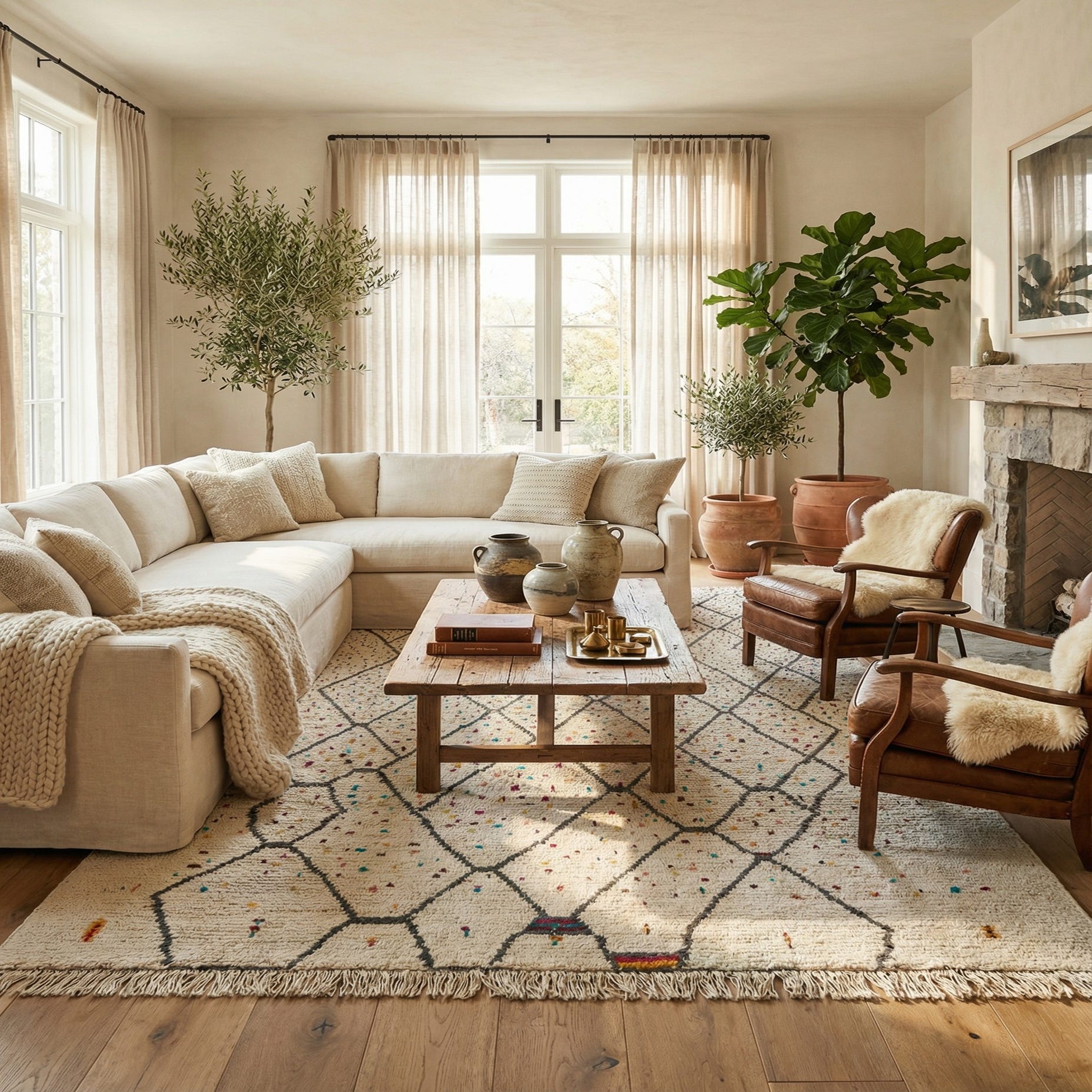 Hand-knotted from 100% wool, the rug has a warm, slightly springy hand and a textured nap that invites barefoot comfort while showing the subtle variations of artisan weaving. It pairs naturally with natural wood and rattan furnishings, linen upholstery and leather accents, and can ground a casual living room, layered bedroom vignette, or a bright, modern nursery or play space. Use it to soften minimalist interiors or to add a light, colorful counterpoint to mid-century and bohemian schemes.