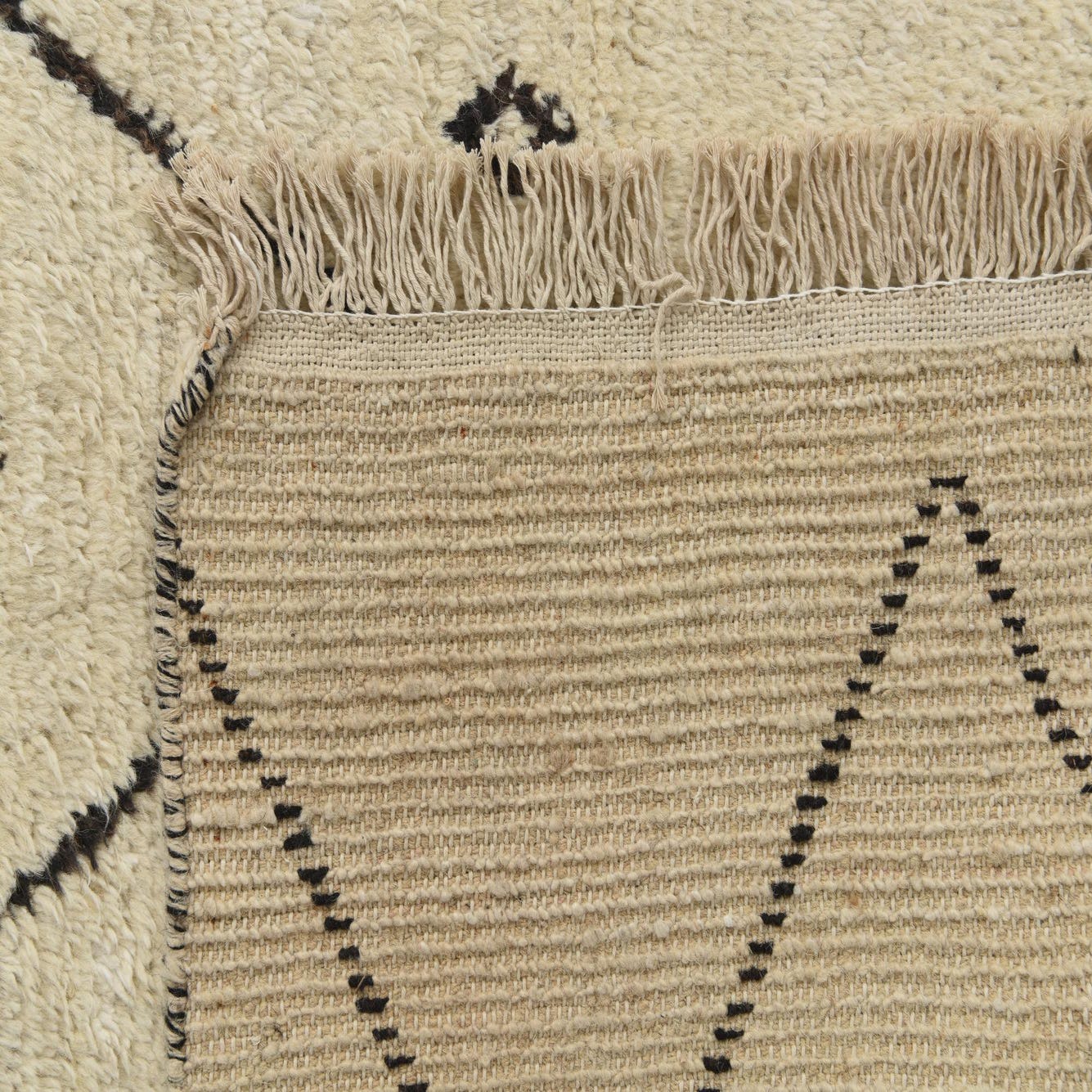 Primary color is Ivory. Colors in this rug include: Ivory, Black.
