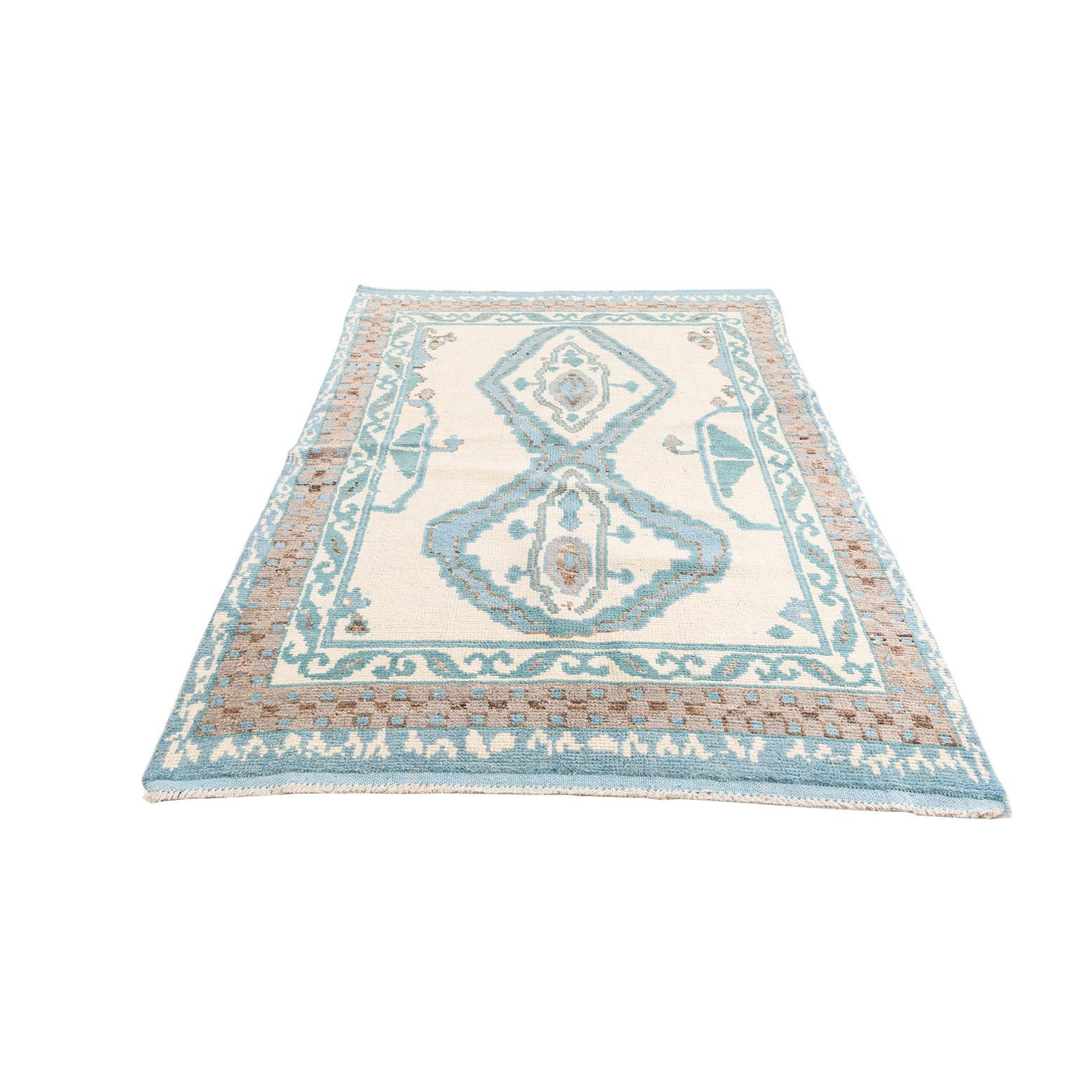 Primary color is Ivory. Colors in this rug include: Ivory, Brown, Light Brown, Light Blue.