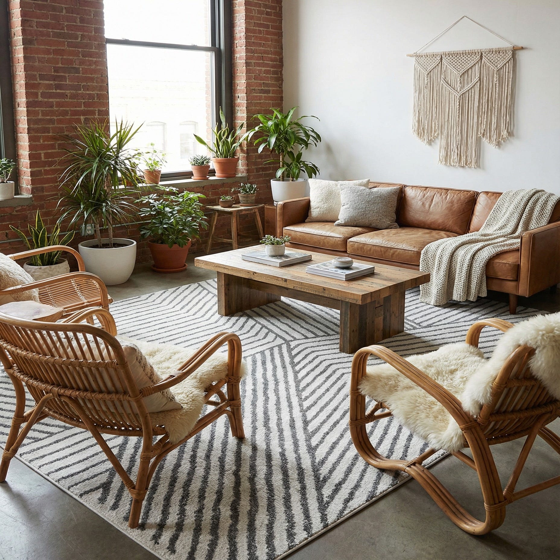 This rug fits well in modern, Scandinavian, and transitional interiors—pair it with light wood furniture, black metal accents, or neutral upholstery to build a layered, calm scheme. It’s a strong choice to anchor a sofa and coffee table in the living room, define a home office area, or sit beneath a dining table where a graphic, tonal statement will lift the space without overwhelming other finishes.