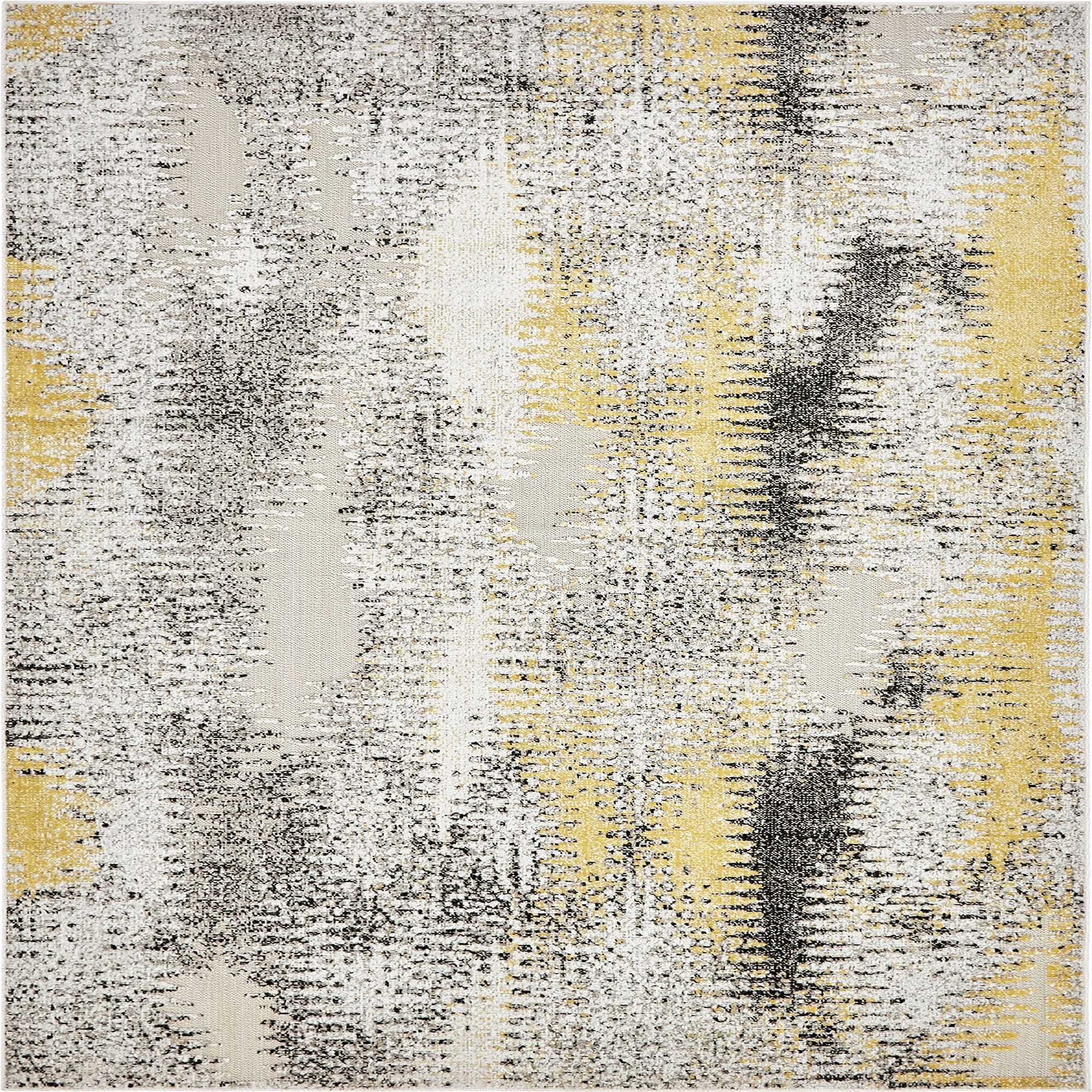 An airy ivory field provides a clean backdrop for an abstract, distressed pattern of soft gray and sunny yellow. Layered, pixel-like striations and vertical washes of color create a sense of movement while the low?profile pile keeps the surface smooth and grounded. Machine made of 100% polypropylene, the rug has a slightly textured hand that feels firm underfoot and resists flattening from regular use.
