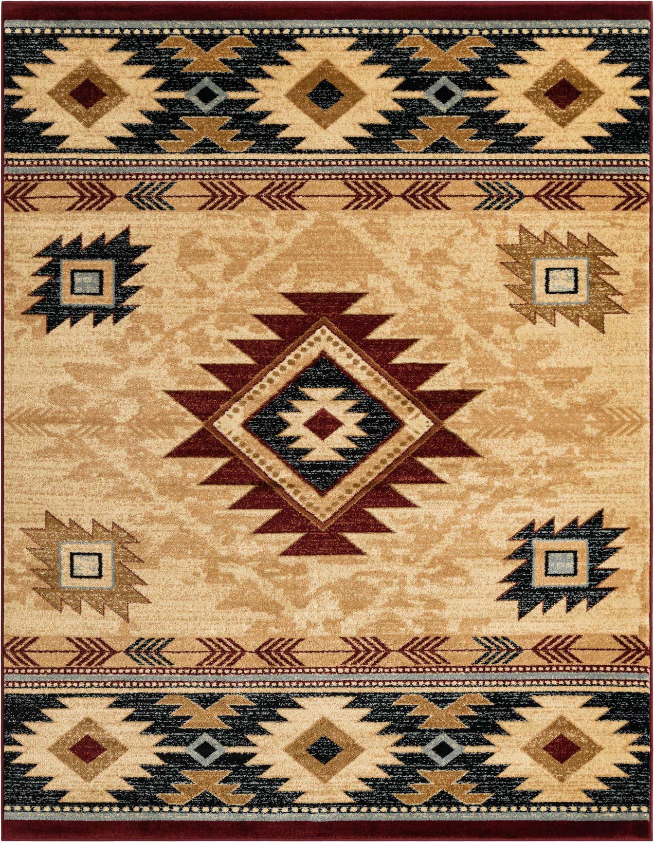 Primary color is Ivory. Colors in this rug include: Ivory, Beige, Black, Brown, Red, Gray.