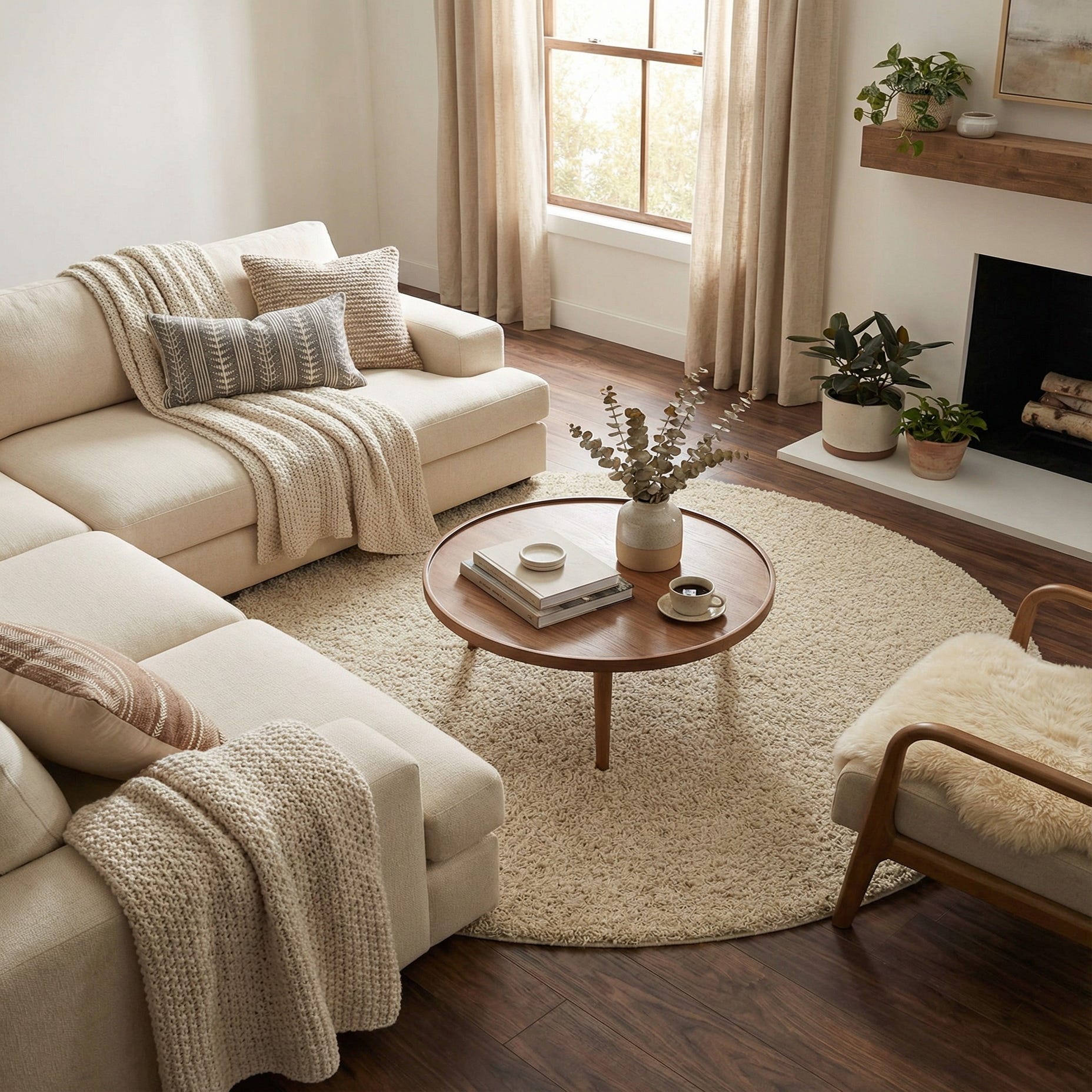 Place it under a low-profile coffee table to soften a living room, tuck it at the foot of the bed to add warmth to a bedroom, or use it in a nursery or reading nook to introduce a cozy surface. The neutral ivory tone pairs naturally with Scandinavian, coastal, modern farmhouse, and transitional décor, and the round shape helps define seating areas or soften rooms with strong angles.