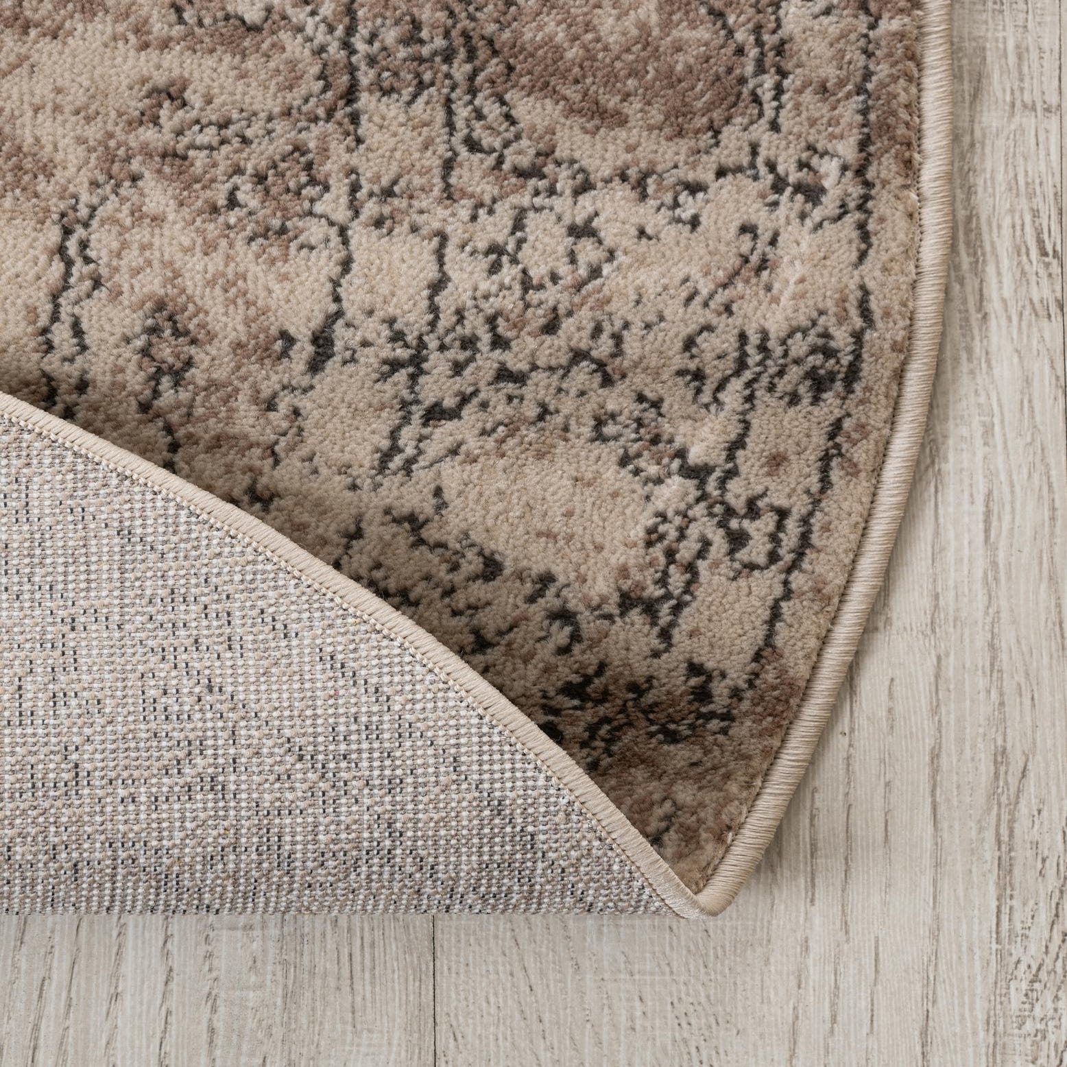 The round shape anchors seating groups and dining nooks with calm, neutral tones that pair easily with warm wood finishes, linen-upholstered sofas, and muted metal accents. It works well in a transitional living room beneath a round coffee table, under a dining table in a cozy breakfast nook, or layered over hardwoods in a bedroom to soften the space. The subdued color palette also complements Scandinavian, coastal, and modern farmhouse interiors.
