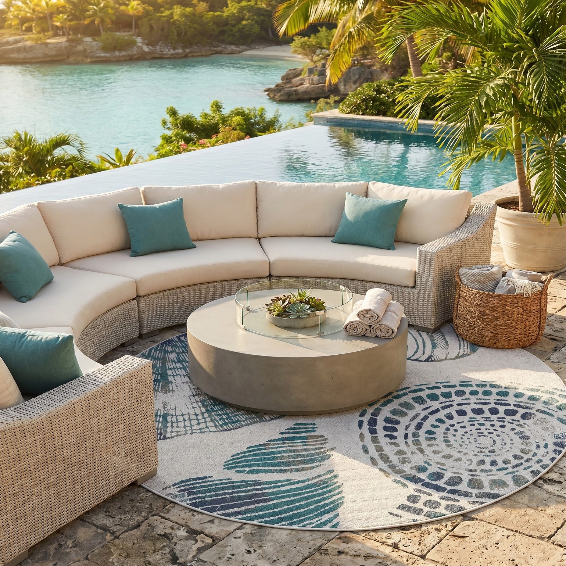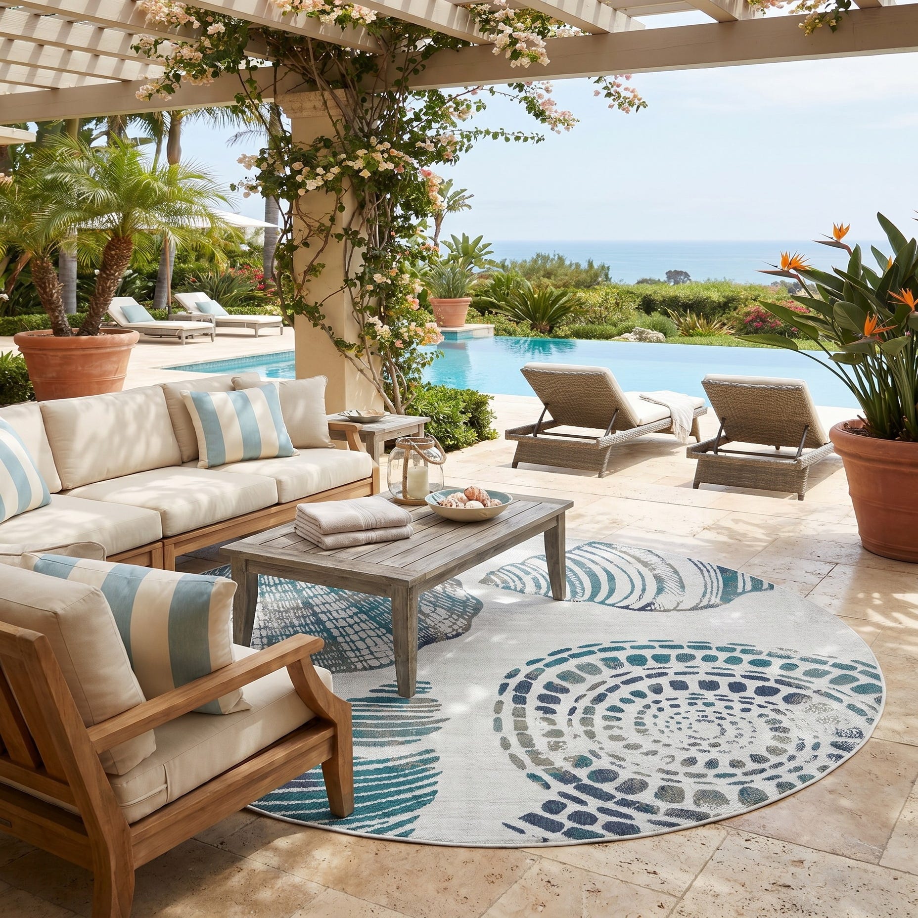 7' x 7' Easy-Clean Coastal Indoor / Outdoor Round Rug