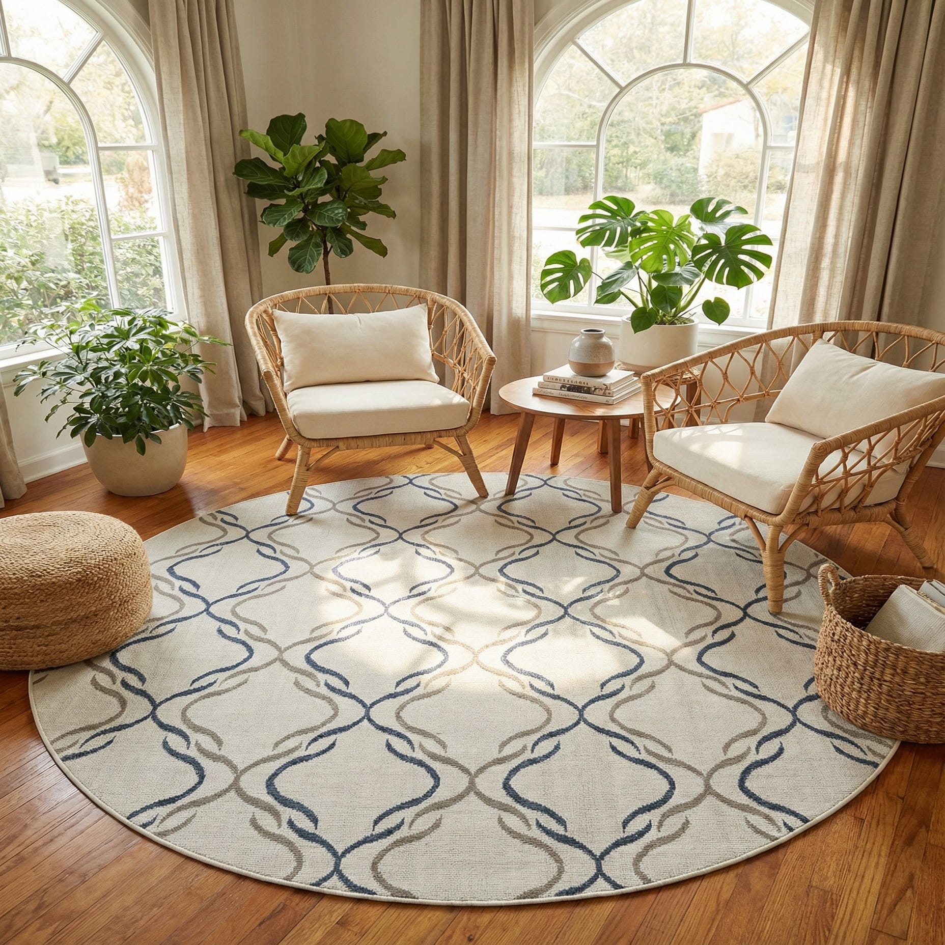 7' x 7' Washable Lattice Indoor / Outdoor Round Rug
