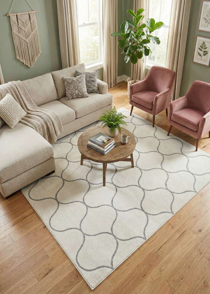 Run your hand across the pile and you’ll notice the dense, cushioned texture that holds its shape, making this design well-suited to everyday living spaces. It works nicely beneath a sofa to anchor a contemporary living room, layered under a bed in a calm, neutral bedroom, or placed in a home office to add graphic interest without overwhelming the space. The ivory-and-gray palette pairs easily with light wood tones, cool metals, and minimalist furnishings for a versatile, transitional look.