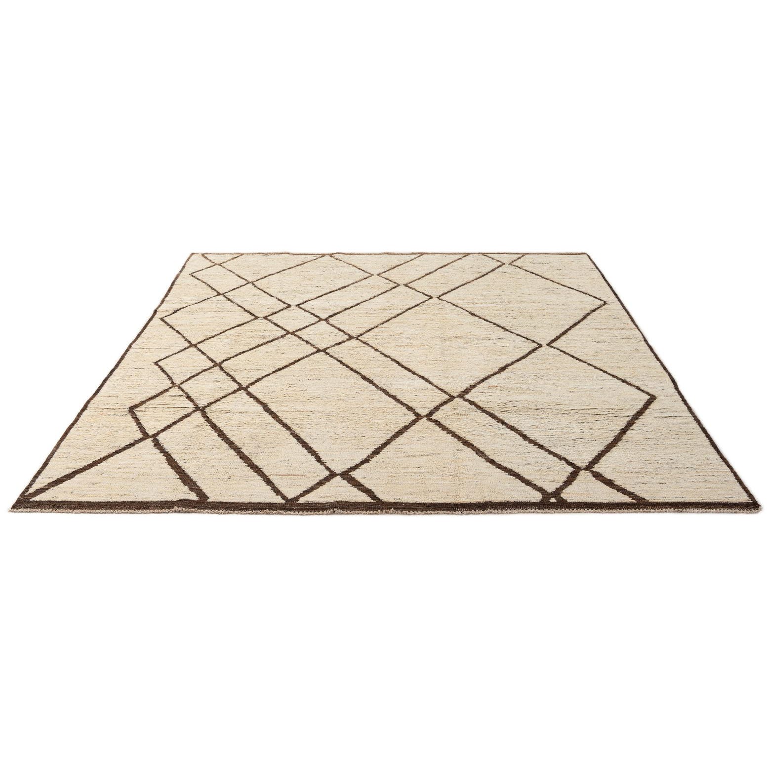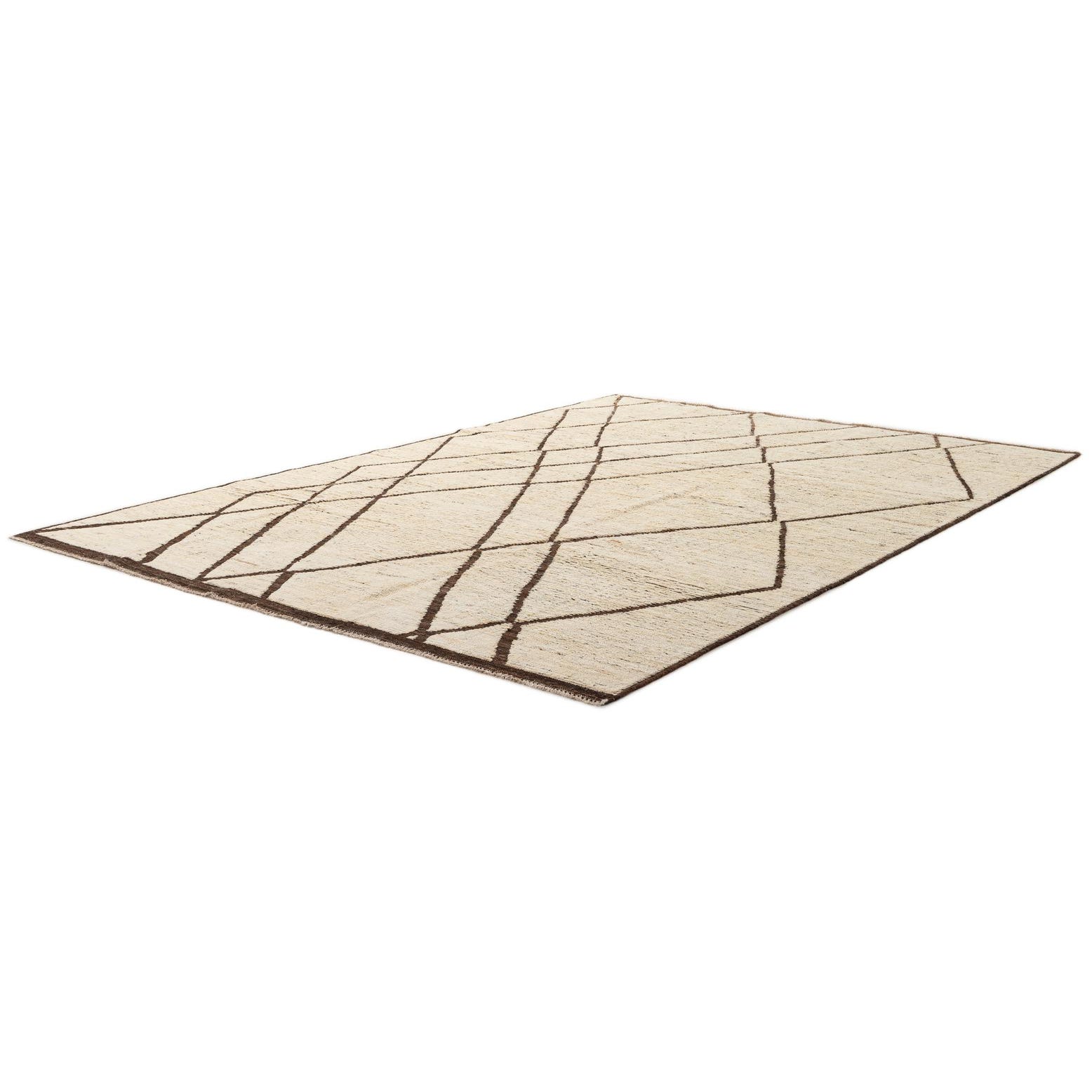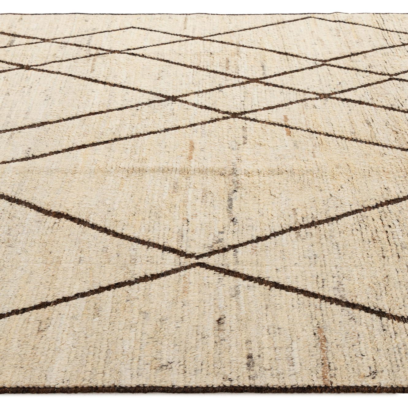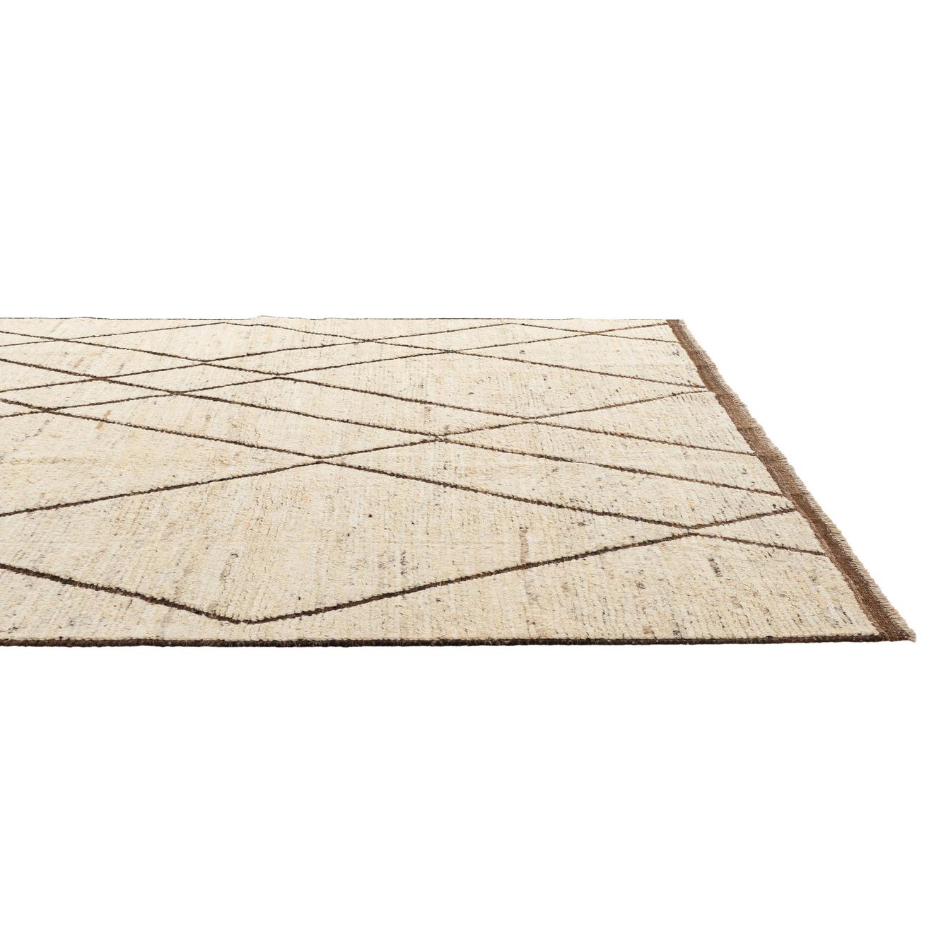 A 7x10 rectangular Darya rug in ivory and cream with a modern dark brown diamond pattern, suitable for a living room.