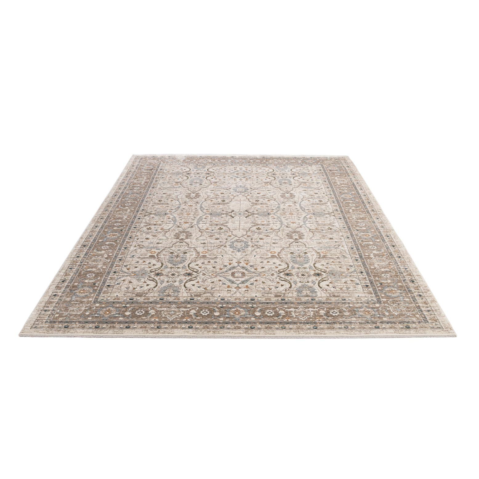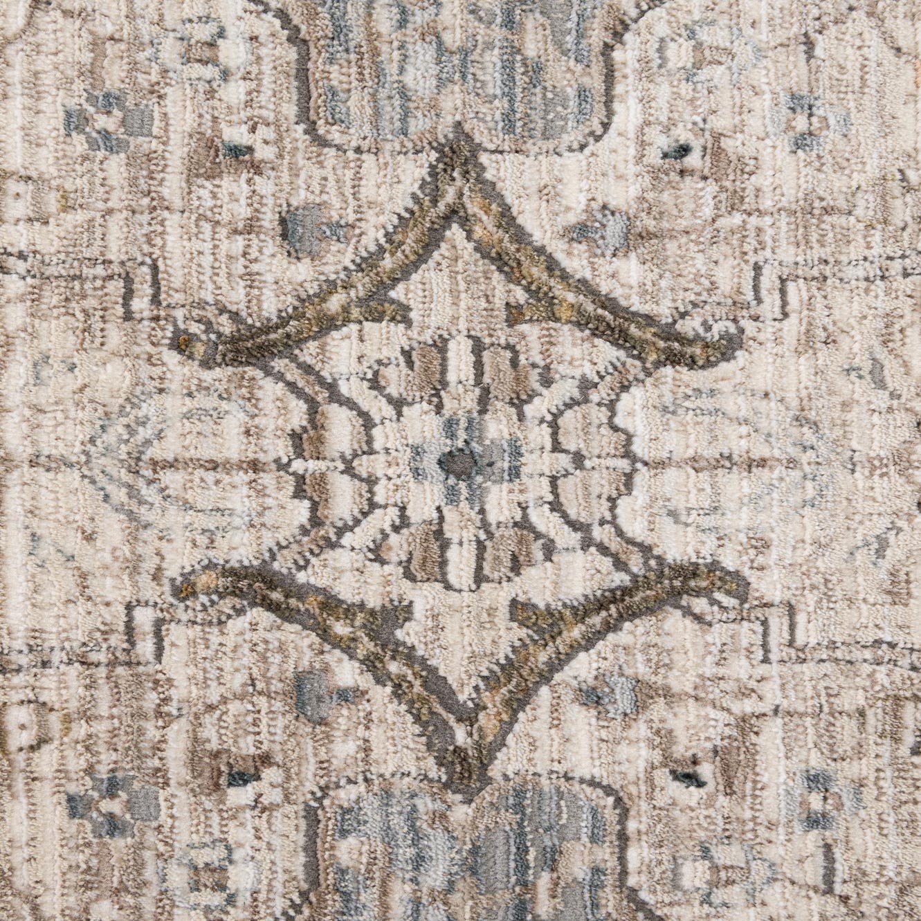 Primary color is Ivory. Colors in this rug include: Ivory, Brown, Gray, Blue.
