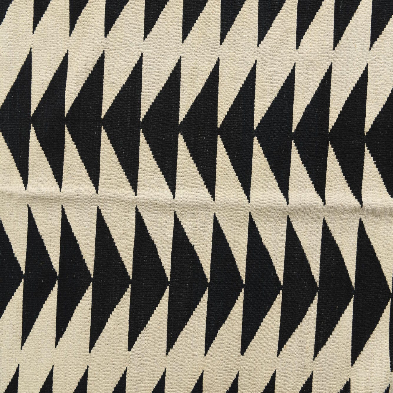 A 7x10 rectangular flatweave rug with a modern tribal pattern of black triangles on an ivory background.