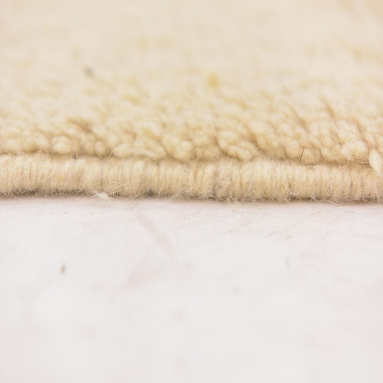 This rug's neutral hues and classic design make it versatile for integration into diverse decor styles including minimalist environments, where it can serve as a subtle yet texturally rich focal point, or eclectic and bohemian settings where it could complement a mix of patterns and textures. The woolen construction ensures that it remains a lasting addition to any interior.