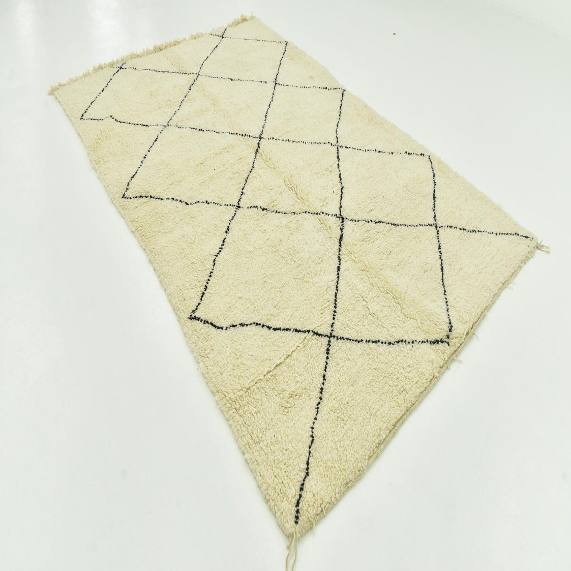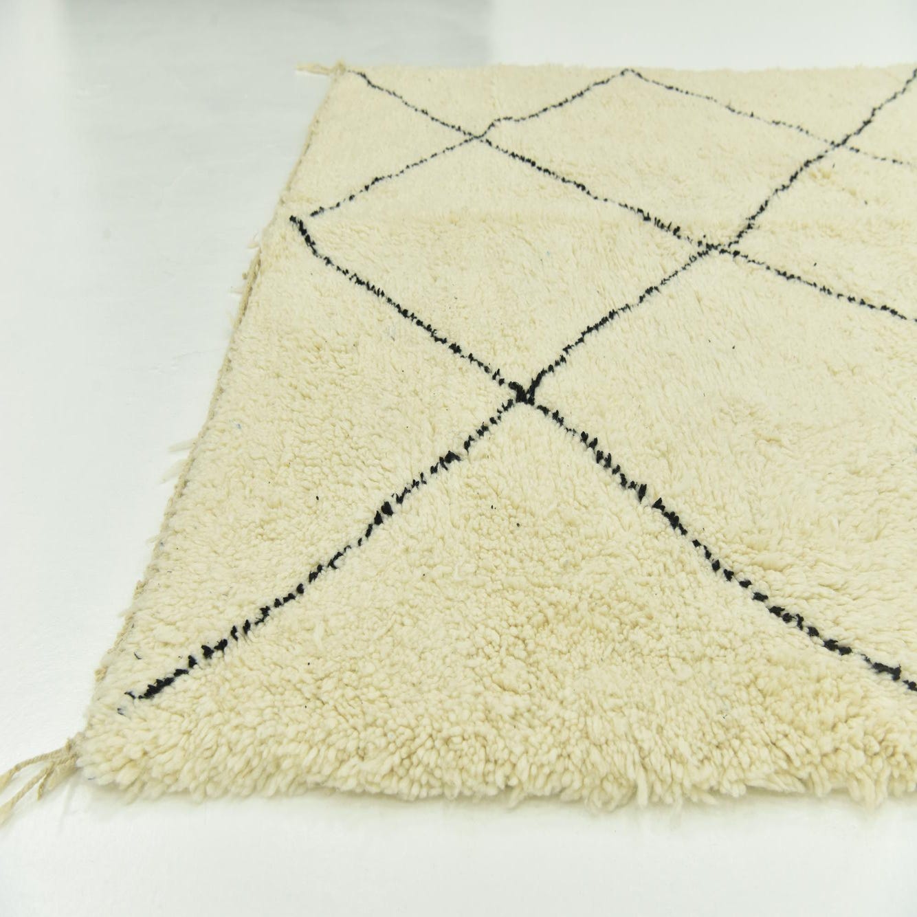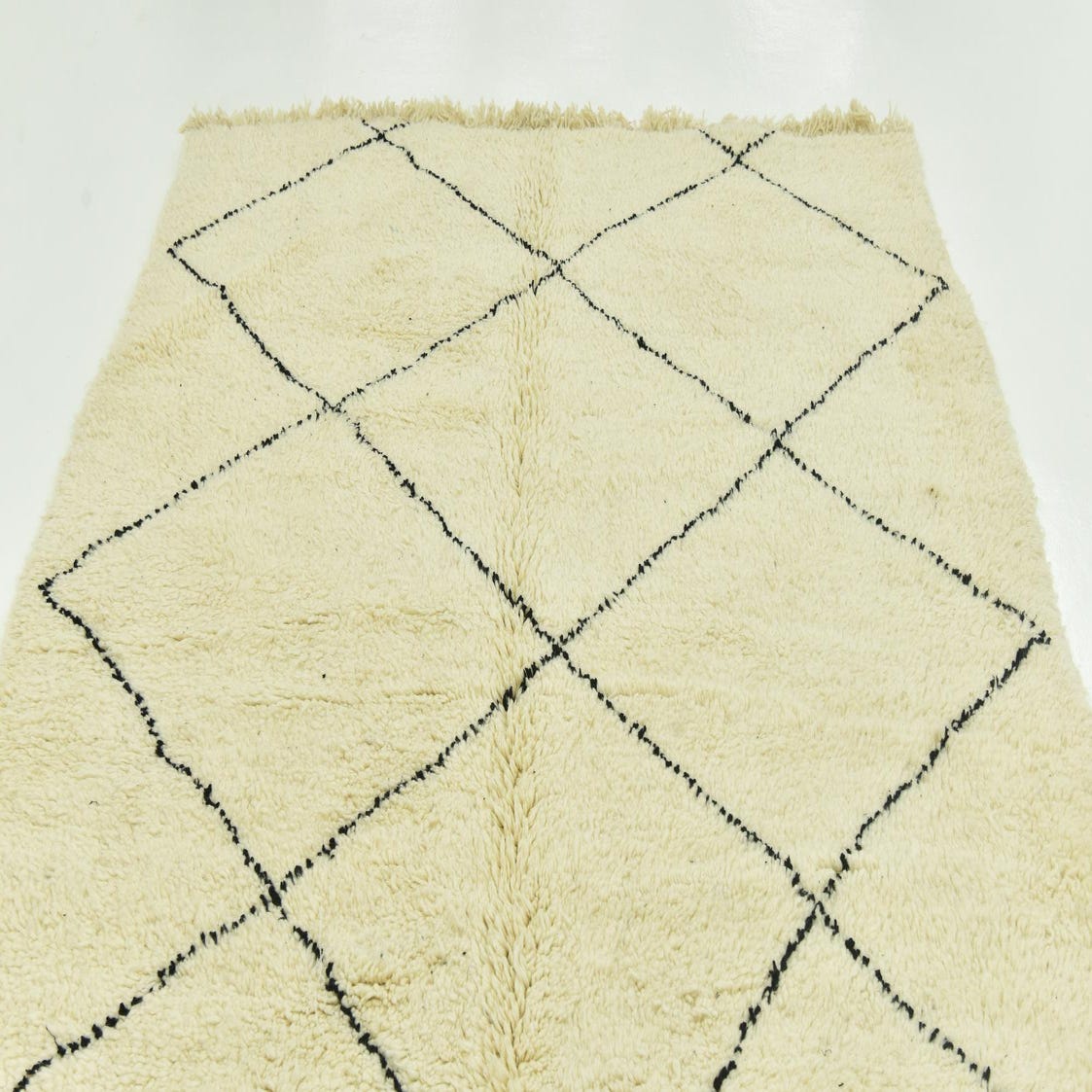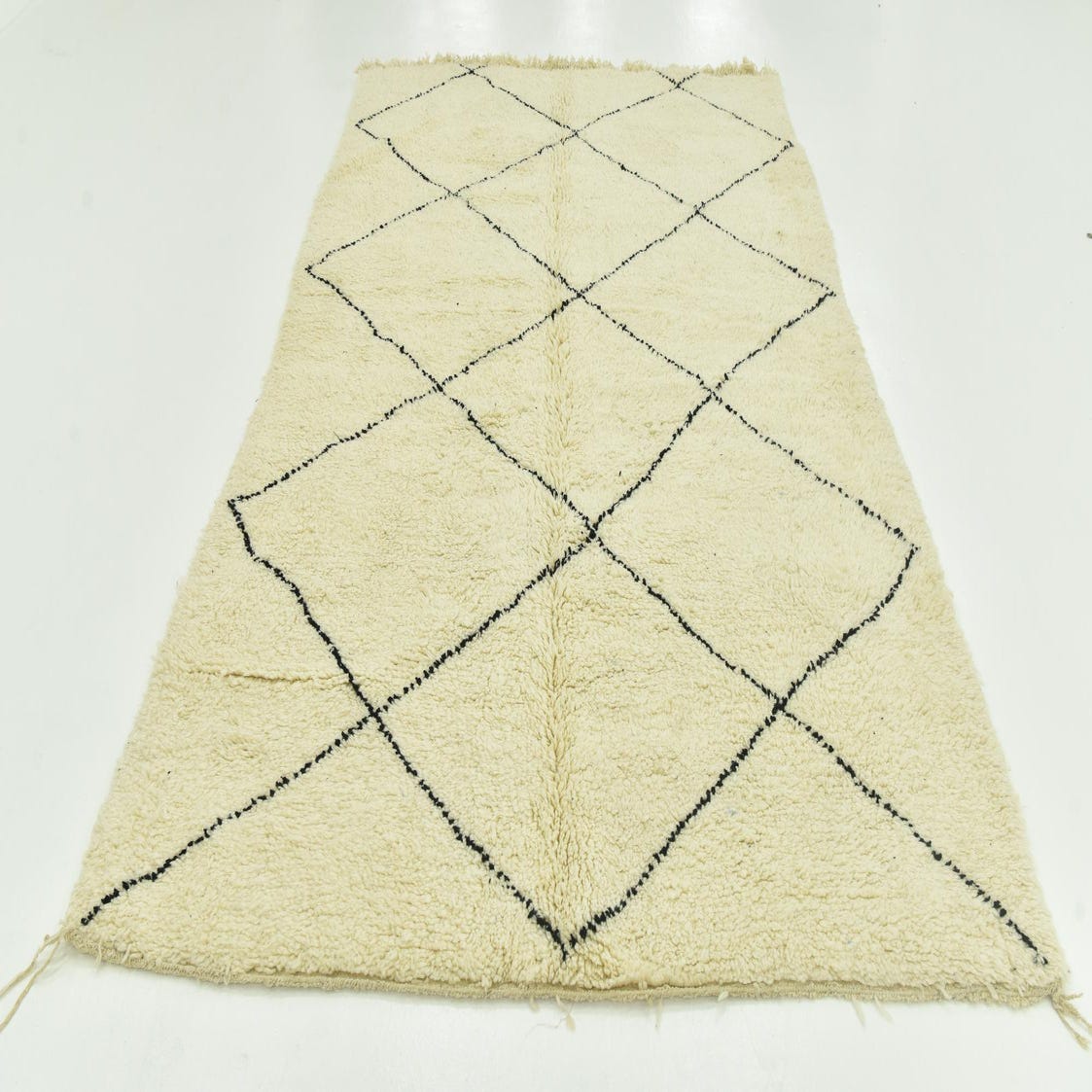 With its simple yet bold diamond motif, this rug is an ideal choice for those aiming to introduce a touch of global inspiration into their home. The fringe detail adds a classic finish, underscoring the traditional craftsmanship inherent in its creation. Due to its neutral color palette, this rug is incredibly versatile, seamlessly integrating with both contemporary minimalist styles and more eclectic, boho-chic decors. Consider this piece as an anchoring element in a living room, under a dining table, or to draw together the design elements of a spacious bedroom.